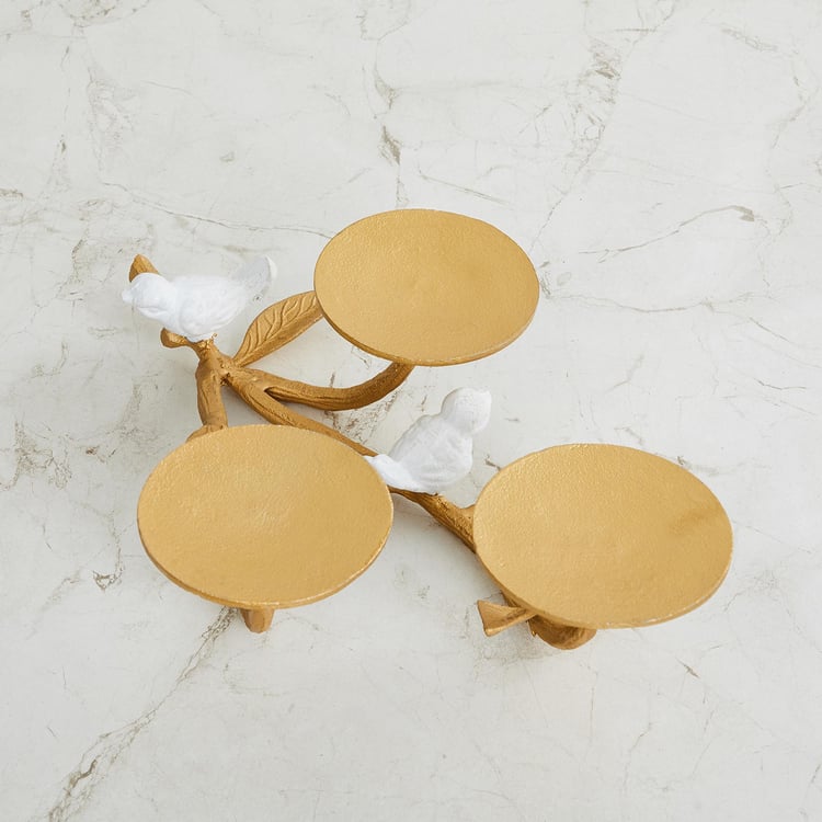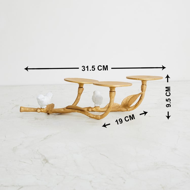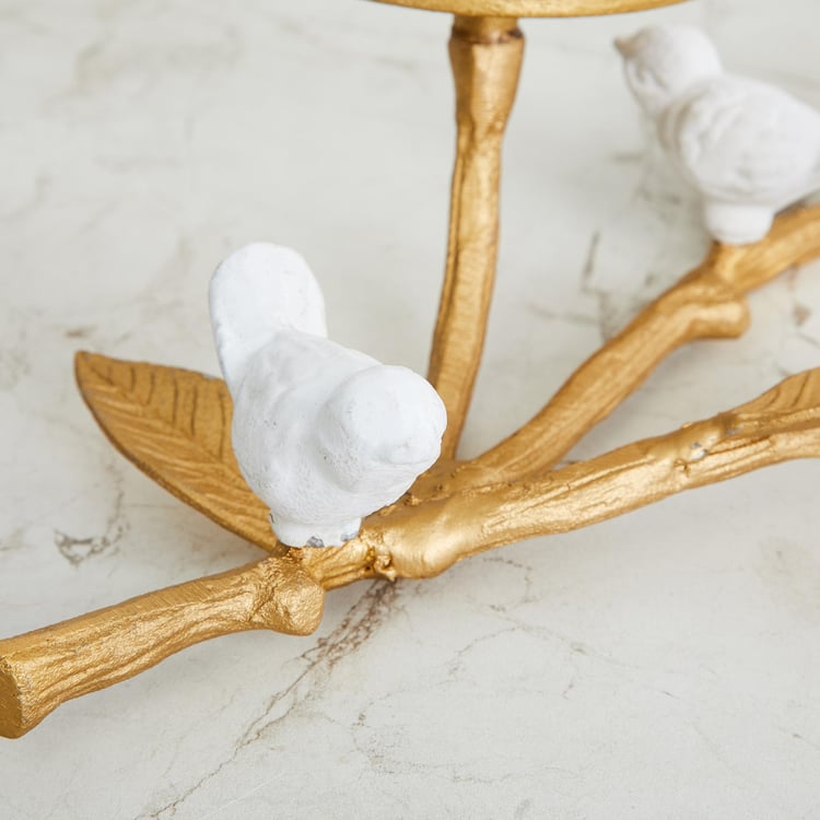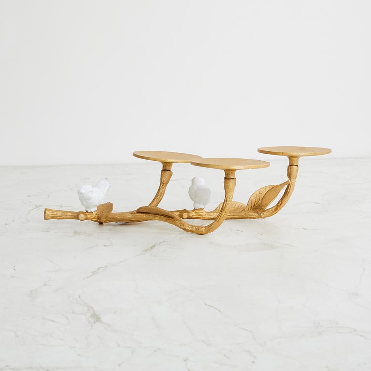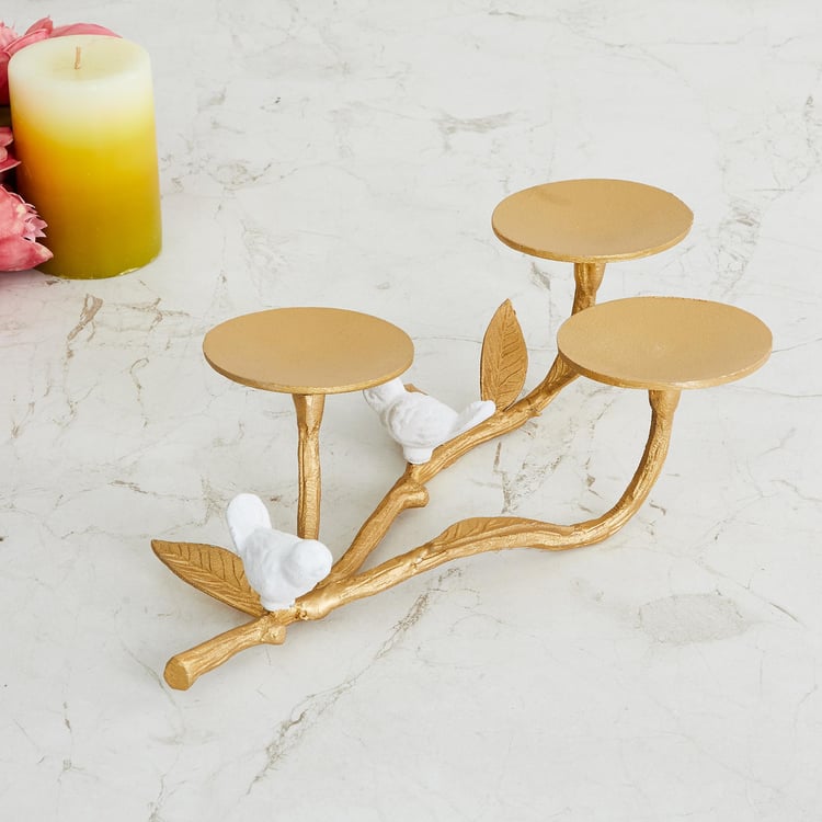 Splendid Gold And White Solid Metal Candle Holder with Bird Accent