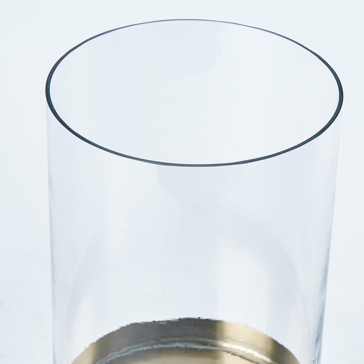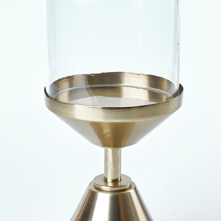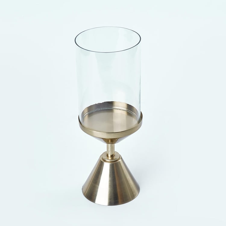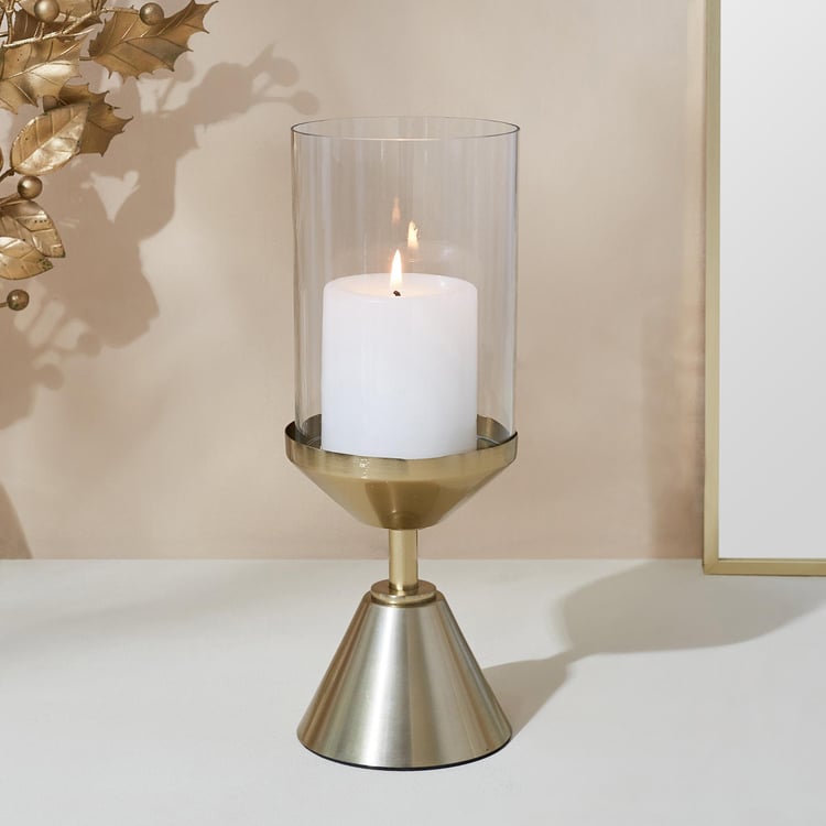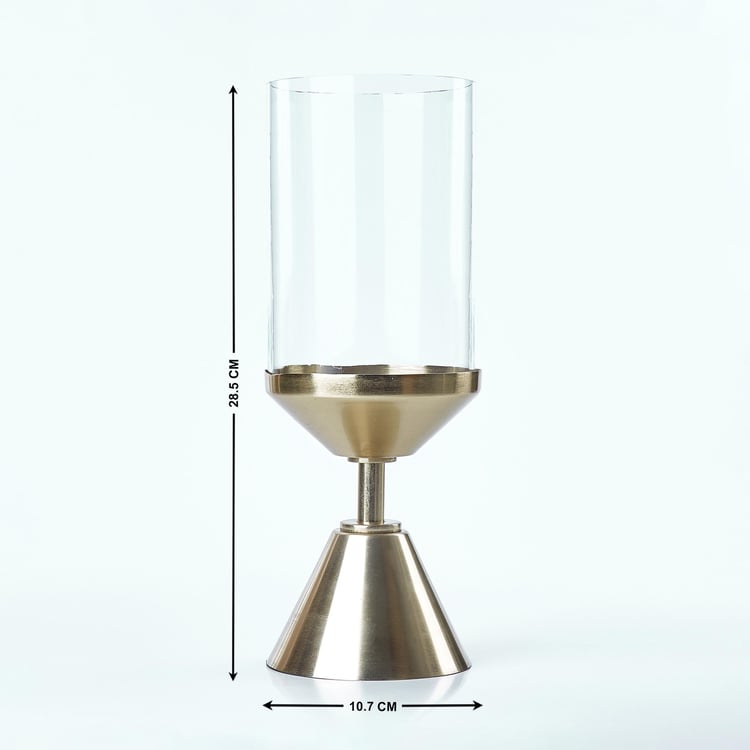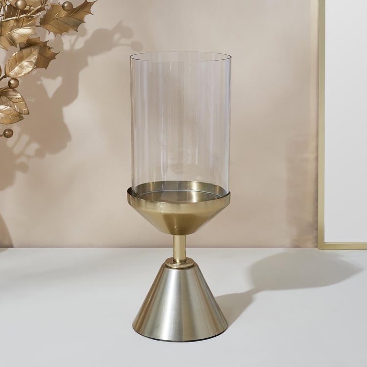 Enhance the precious spaces of your home and flaunt an exotic visual appearance to your home with this hurricane. Made with glass and metal base, this hurricane with holder is a must-have in your decor collection. With its visually appealing structure, this product can be an ideal decorative accessory for your home.