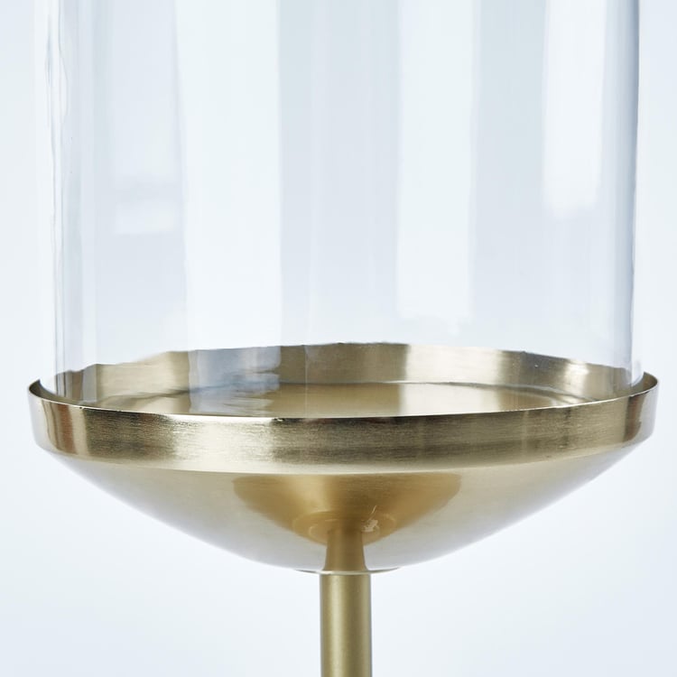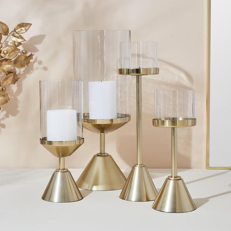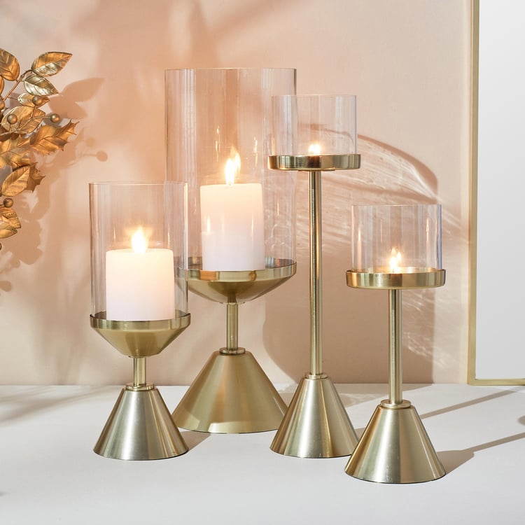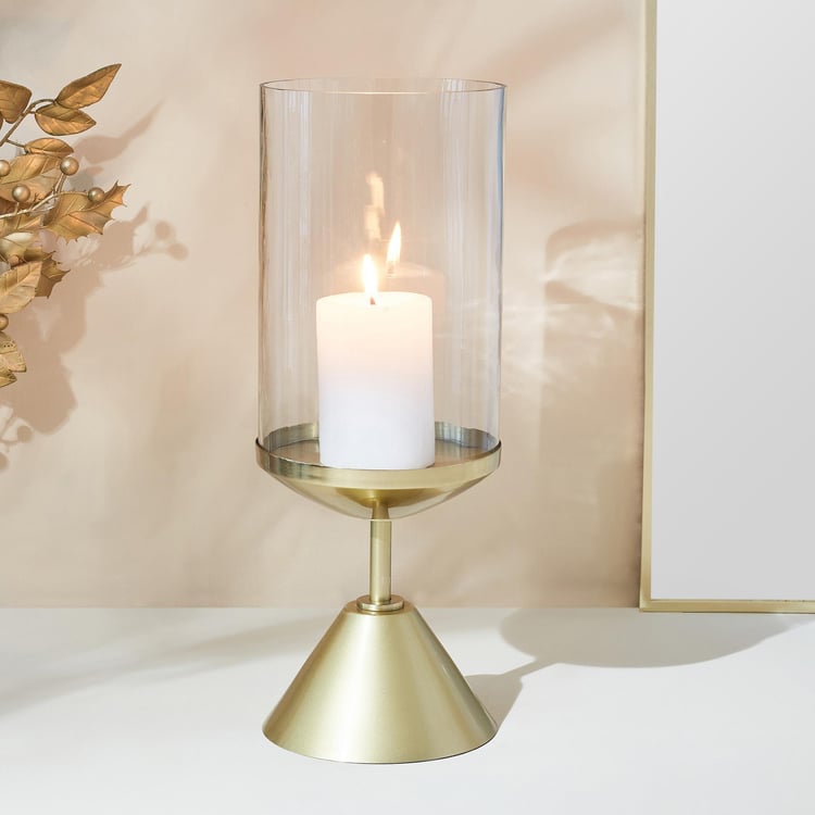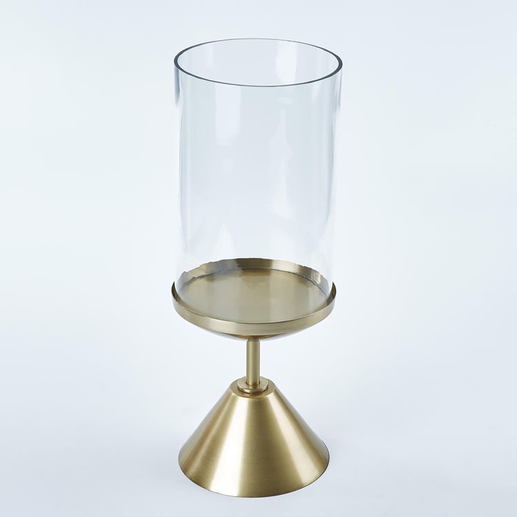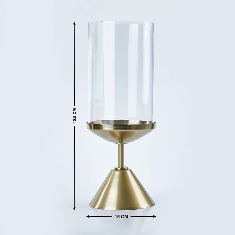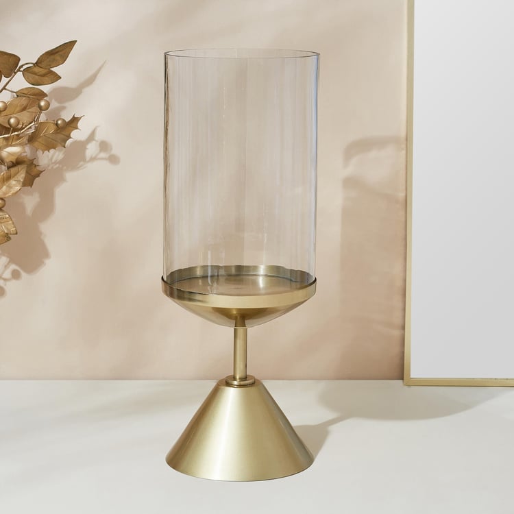 Ameliorate your decor and flaunt an exotic visual appearance to your home with this hurricane. Made with glass and metal base, this hurricane with holder is a must-have in your decor collection. With its visually appealing structure, this product can be an ideal decorative accessory for your home.