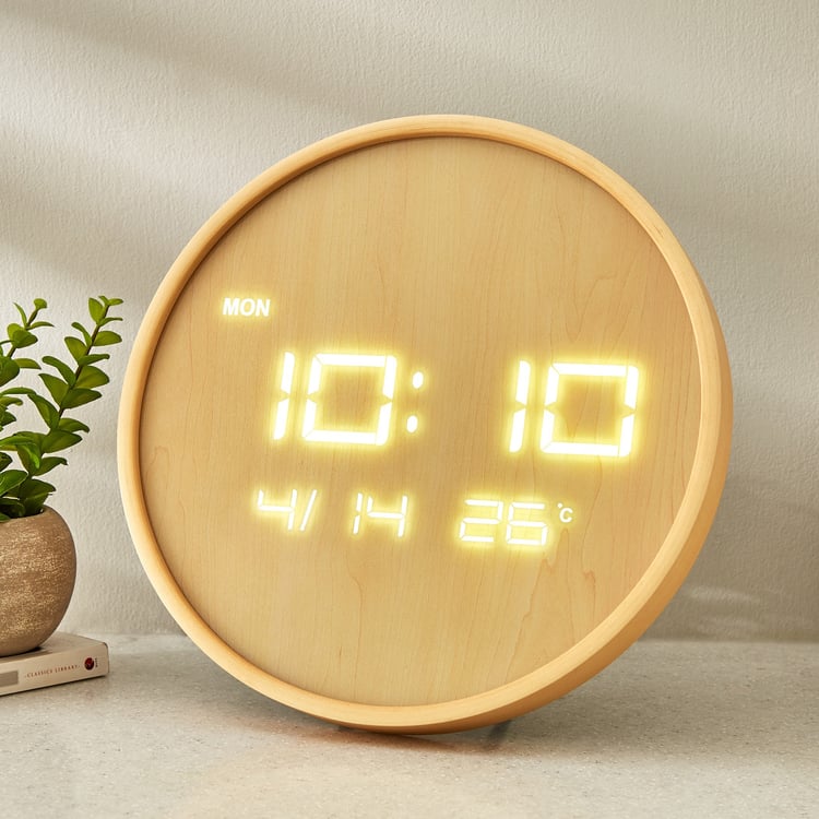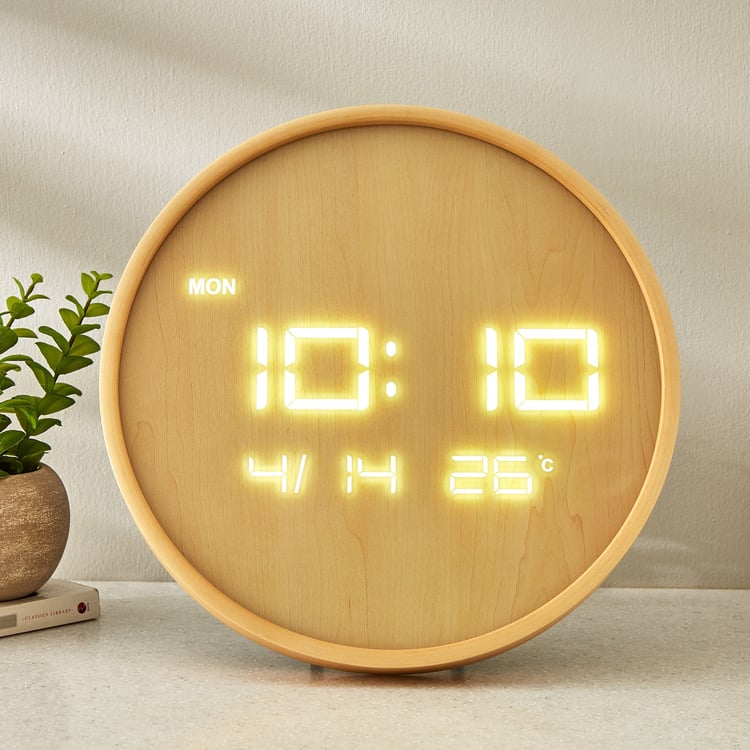 This sleek, round LED wall clock enhances any space with its minimalist design and durable plastic construction. The clear digital display ensures easy readability, while plastic and glass accents add modern elegance.