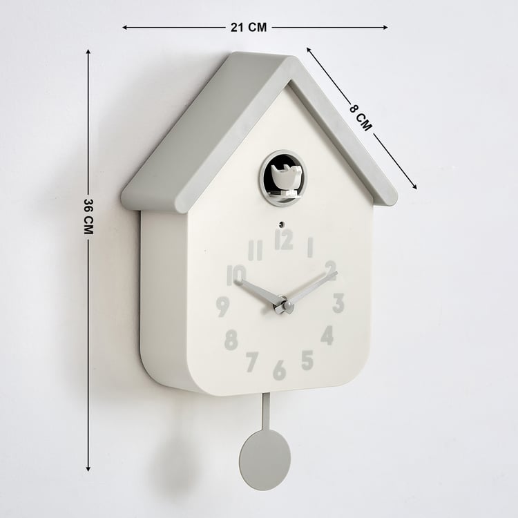 This plastic wall clock adds a playful charm to any room. Featuring a classic cuckoo bird with a swinging pendulum, it's lightweight, durable, and perfect for kids’ rooms or whimsical home decor.
