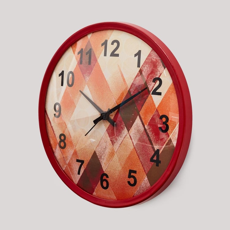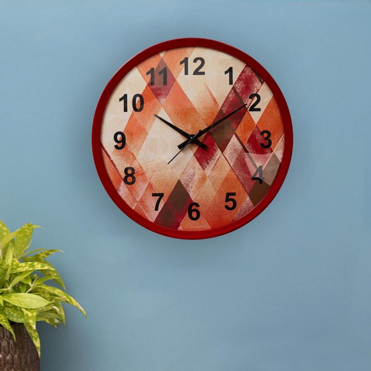 Stay ahead of time with this wall clock which features a printed detail. The round frame makes it easy to perch on the wall to enhance the appeal.