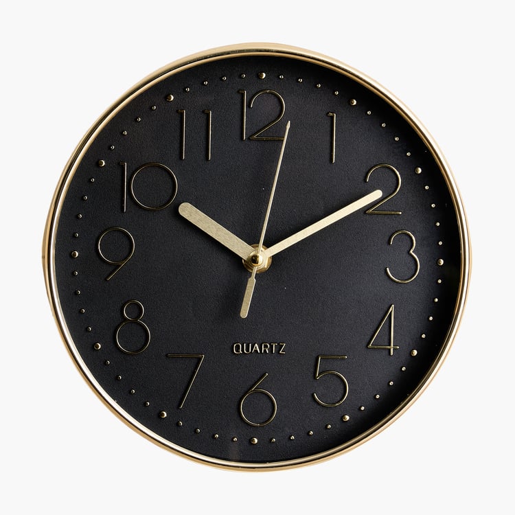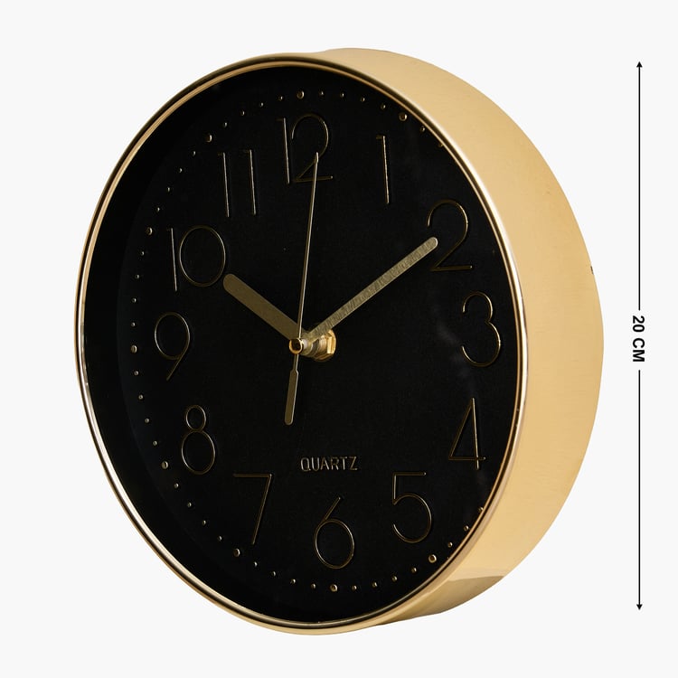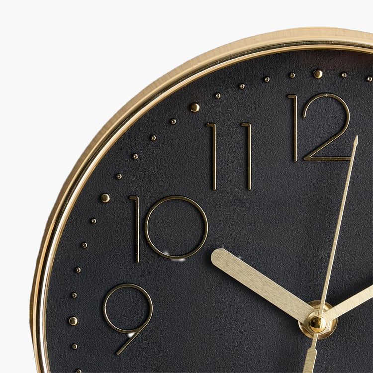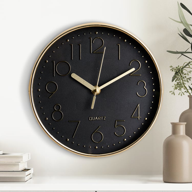 Bring timeless style to your space with this wall clock. Featuring a sleek, round design and a durable plastic frame, it offers a polished, modern look that blends warmth and simplicity effortlessly.