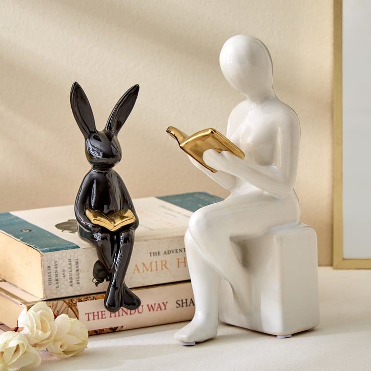 Add charm to any space with this ceramic sitting rabbit figurine with book. This whimsical piece is perfect for bookshelves, nurseries, or as a unique, thoughtful gift for book and nature lovers.