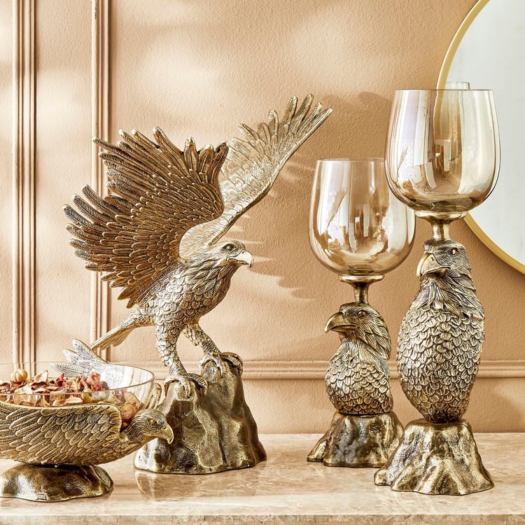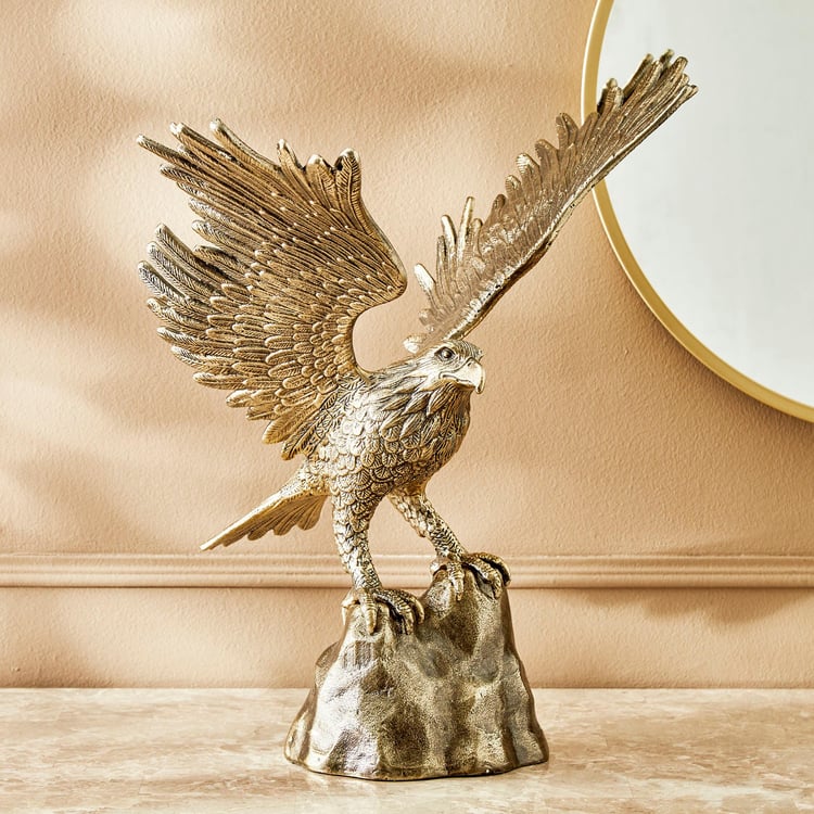 Spruce up your decor with this figurine. Made of aluminium, this majestic figurine is perched on a rock. Add it to your coffee table, display shelf, or console to amp up your space.