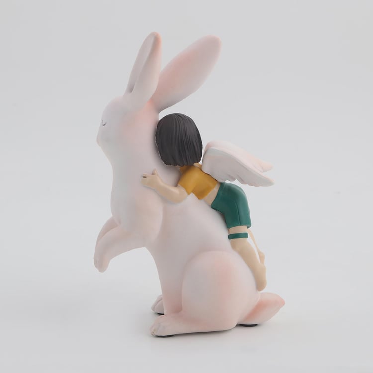 Souvenir Polyresin Girl on Rabbit Figurine