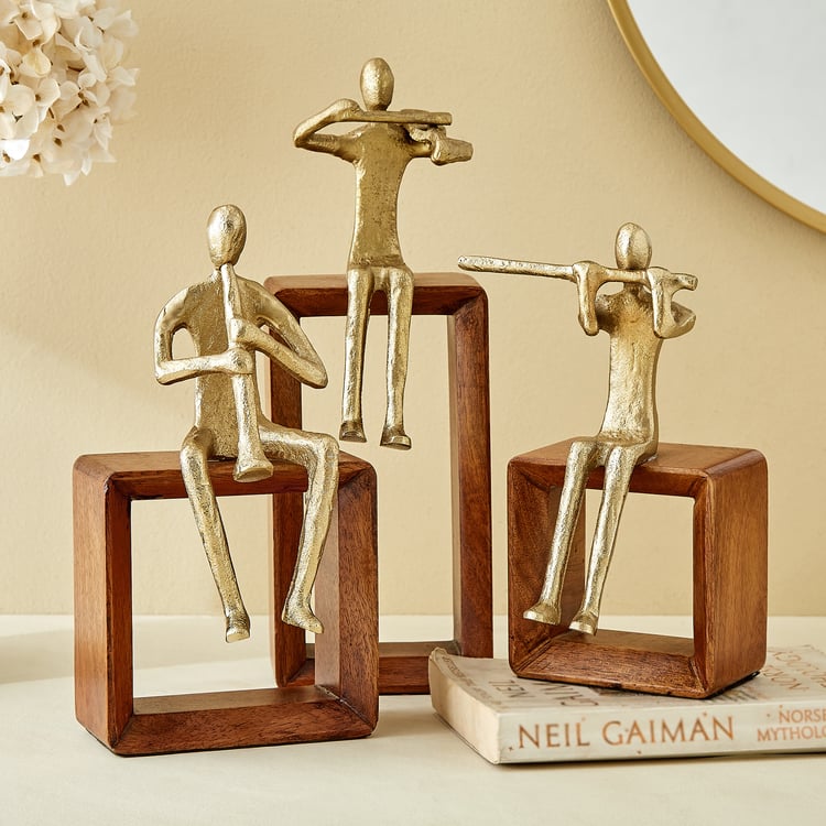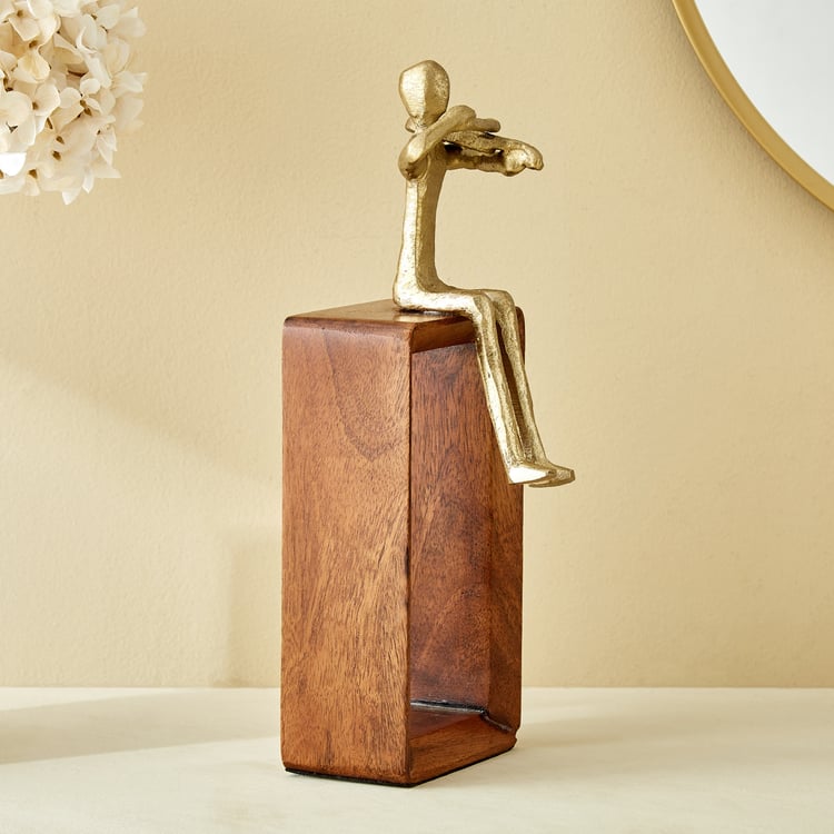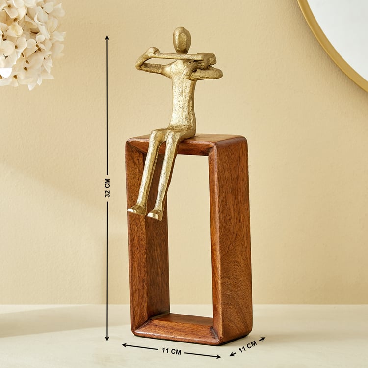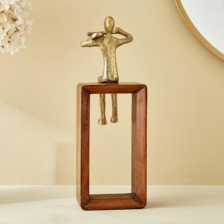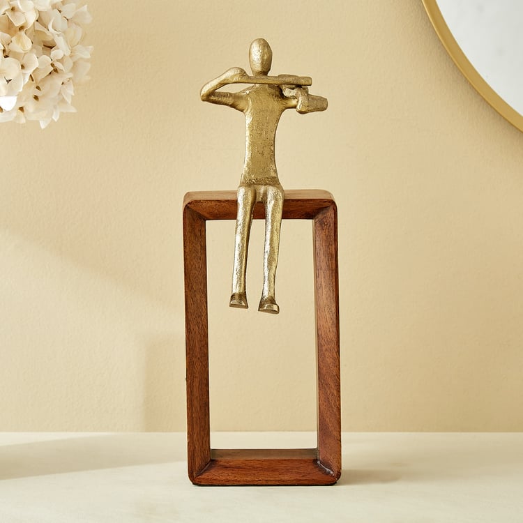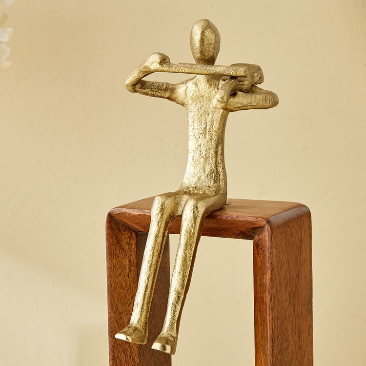 Skillfully crafted from mango wood and aluminium, this artistic figurine captures a man playing the violin, blending rustic charm with modern artistry, perfect for adding character to your decor.
