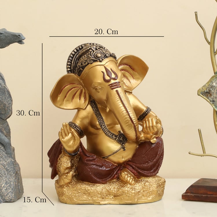 Invite positivity and grace into your space with this polyresin Ganesha figurine. Finely crafted with detailed artistry, it adds a spiritual and decorative touch to shelves or altars.