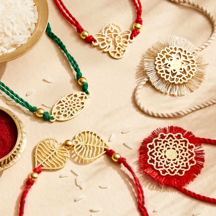 This Rakhi season celebrate the joyous bond with Home Centre. Presenting rakhis crafted from soft fabric, it features intricate Ganesha art that adds a touch of elegance and charm. The combination of art and delicate fabric makes this Rakhi both comfortable to wear and visually appealing.
