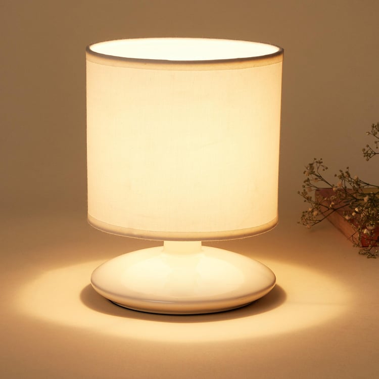 Interpret a sense of elegance with this contemporary wooden and fabric table lamp, designed to set the mood of your home. The shade allows the light to radiate upward as well as downward making the surrounding luminous. Sturdy and Durable. Ideal For living and bedroom.