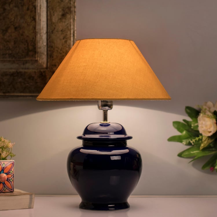 HOMESAKE Corsica Blue Ceramic Pot Shaped Base Table Lamp - 33x40 cm
