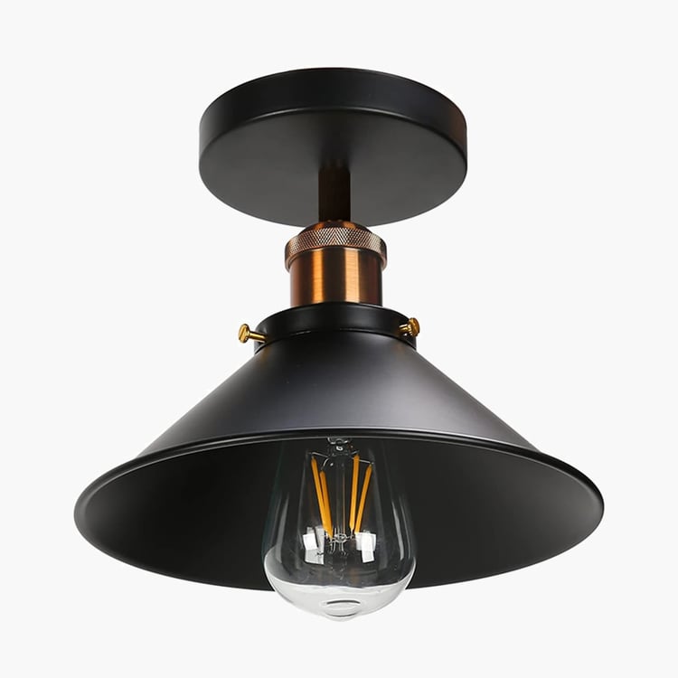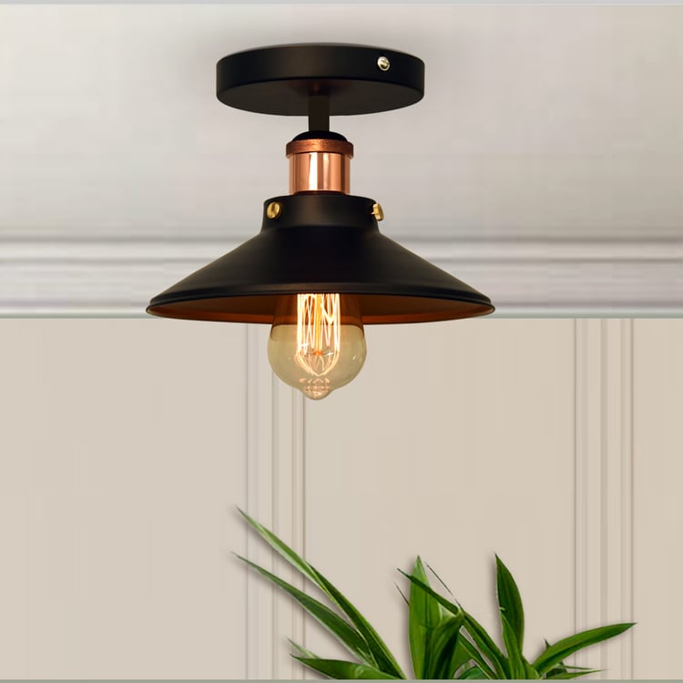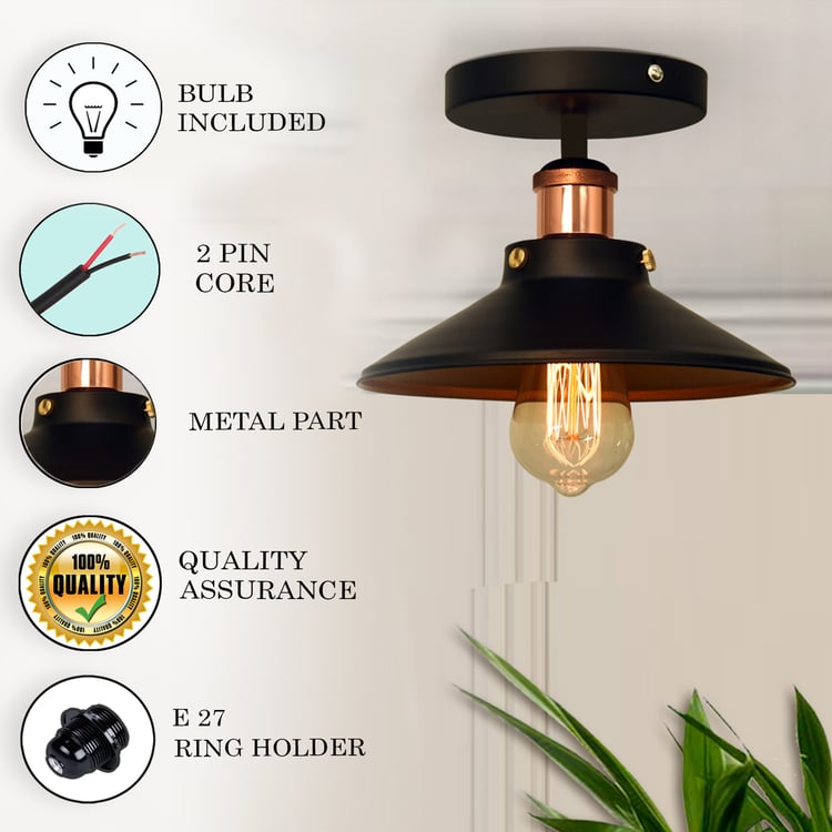 This sophisticated ceiling lamp elevates any interior with its blend of classic design and modern functionality. Featuring an elegant shade with copper accents and durable metal construction, it ensures longevity and optimal light distribution. Its easy installation includes an E27 ring holder and a reliable 2-pin core connection. The included vintage-style Edison bulb adds character and warm ambiance, perfect for entryways, dining rooms, or any space desiring refined illumination and retro charm.