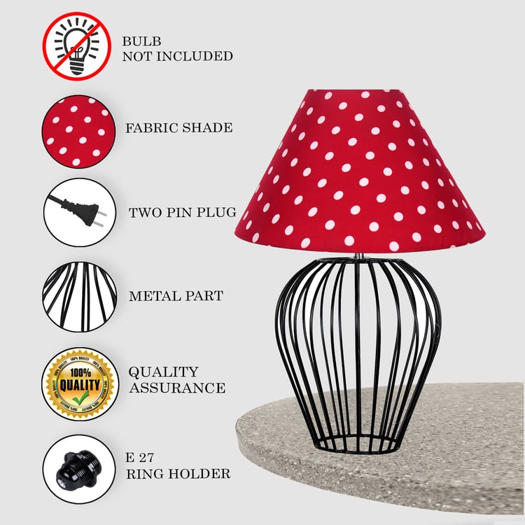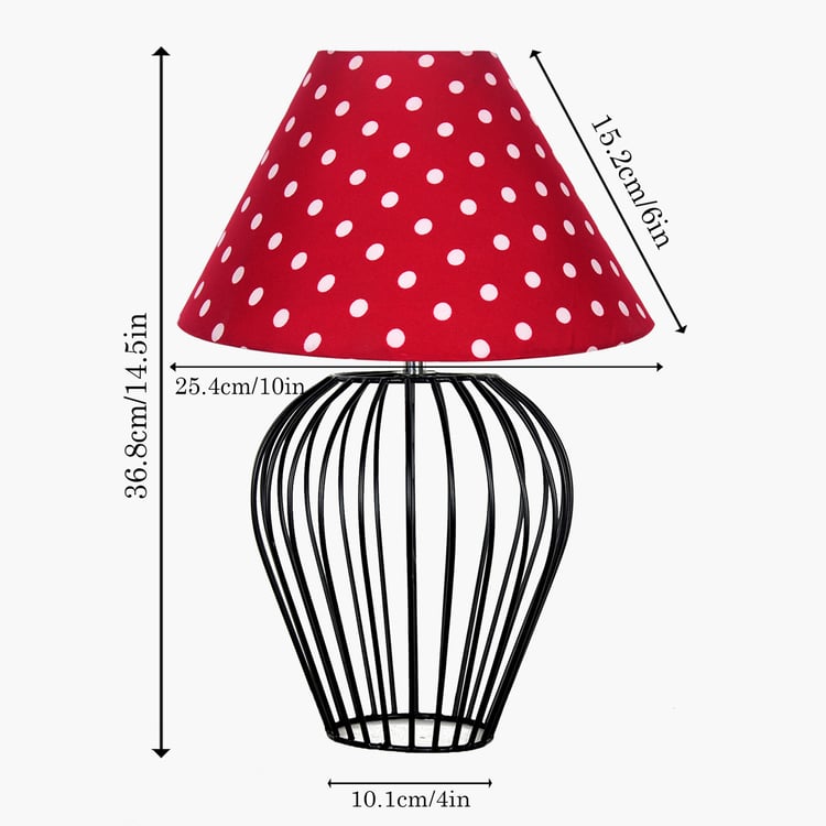 Add a playful yet stylish accent to your room with this charming table lamp. The empire-shaped fabric shade is decorated with polka dots, bringing a fun touch to your decor. The curvy wired metal base adds a sleek, modern element. It is ideal for adding personality to any side table, bedroom, or living space.