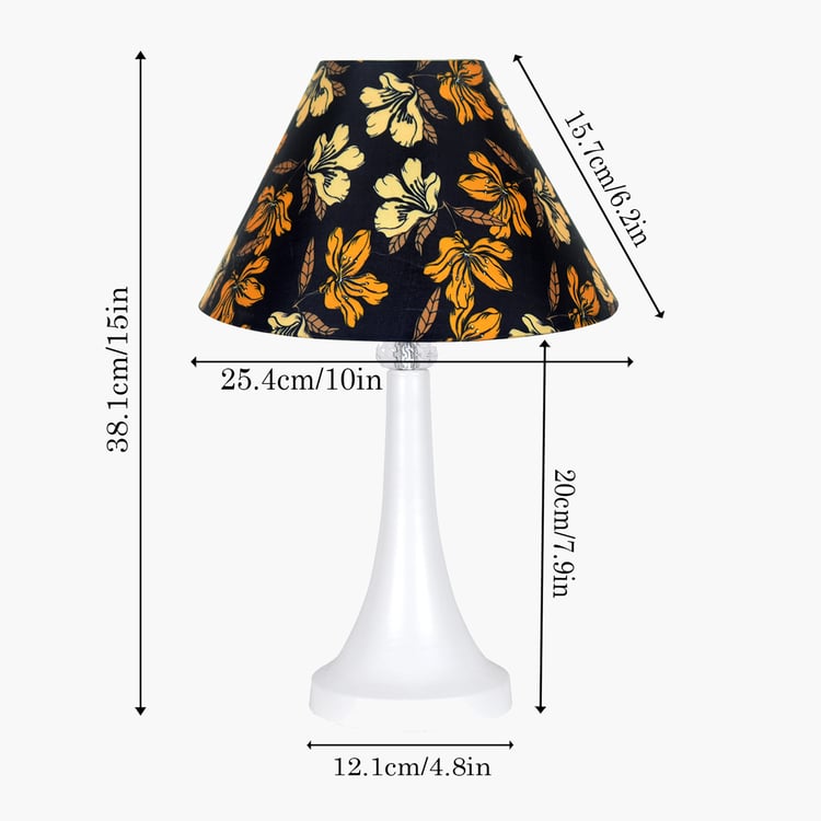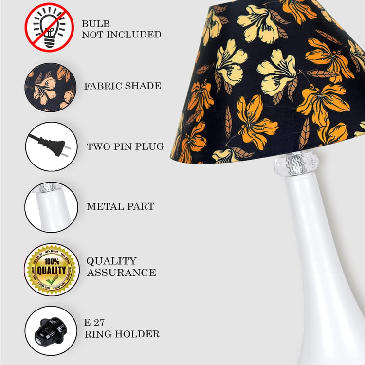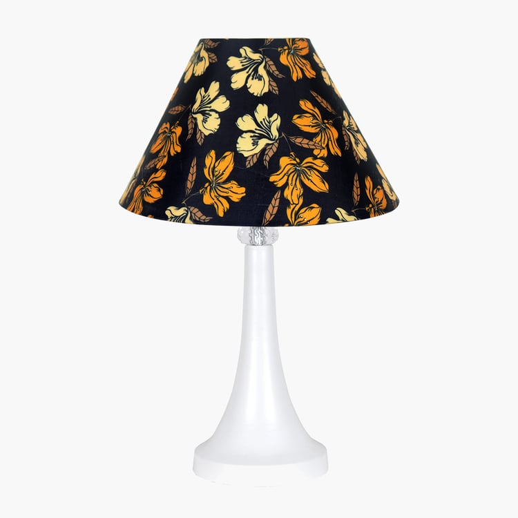 Bring understated elegance to your space with this sophisticated table lamp. It features a sleek metal base and a fabric conical shade with floral prints that offer soft, even lighting. Designed for use with standard E27 bulbs (not included), it also includes a sturdy two-pin plug for easy setup. Its versatile design makes it a stylish addition to bedrooms, living rooms, or offices.