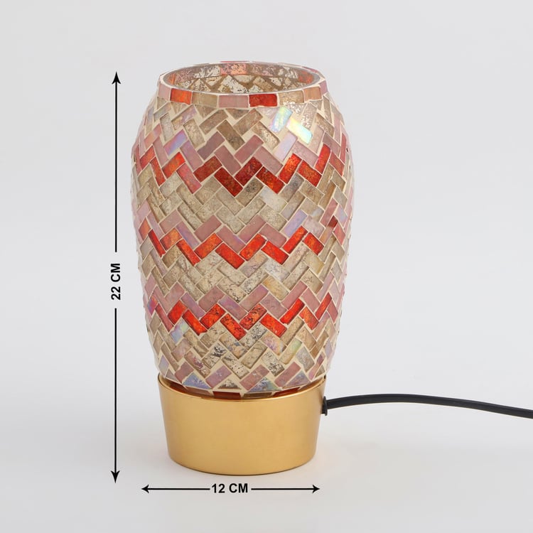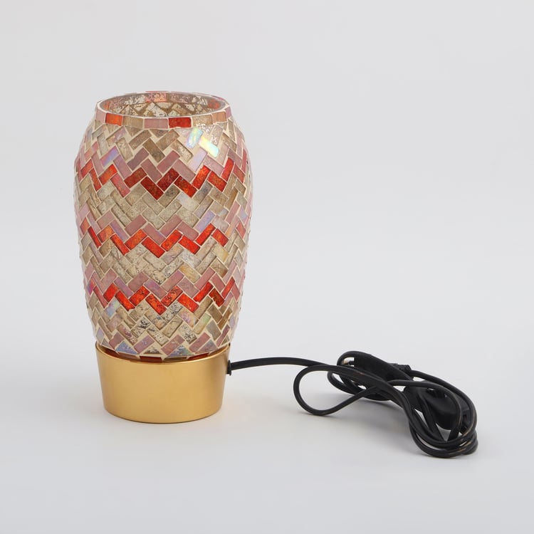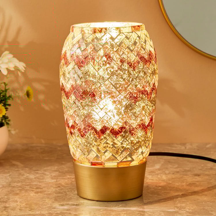 Decorated with a zigzag mosaic design, this table lamp is a perfect way to jazz up your decor. It features a base with a curvy shade at the top made of glass. Add this electric lamp to your entryway console or bedside table to transform the space.