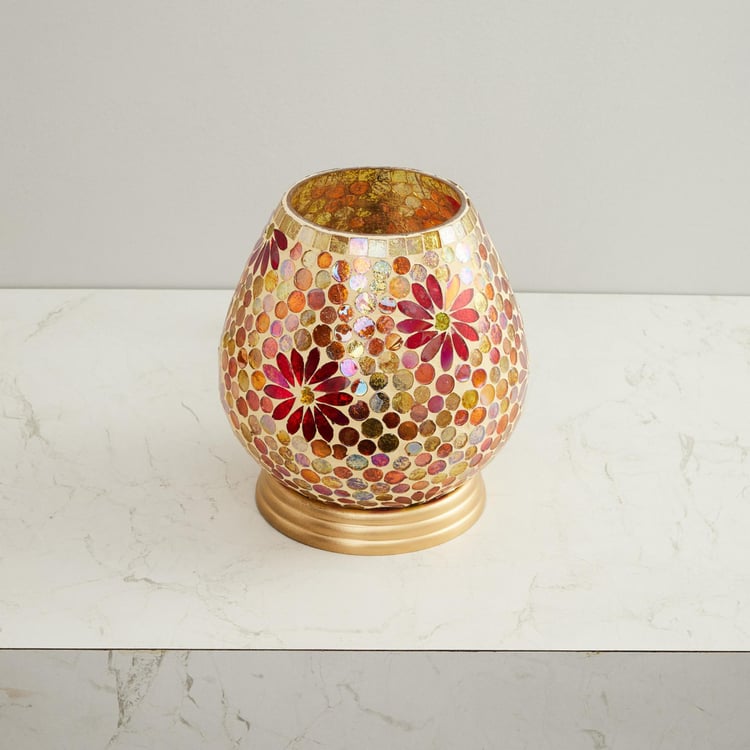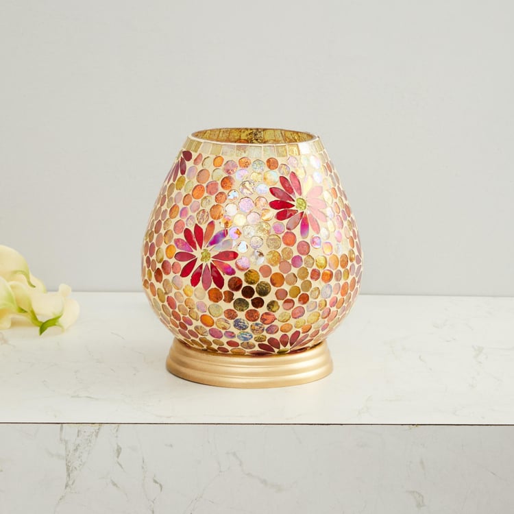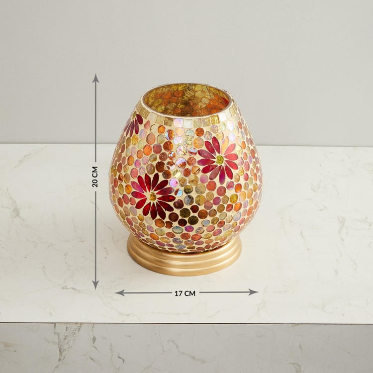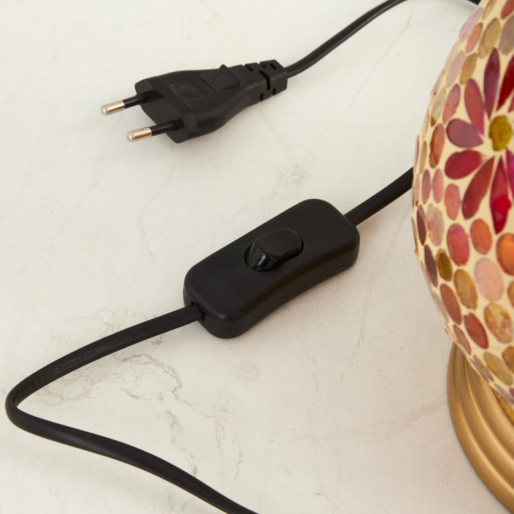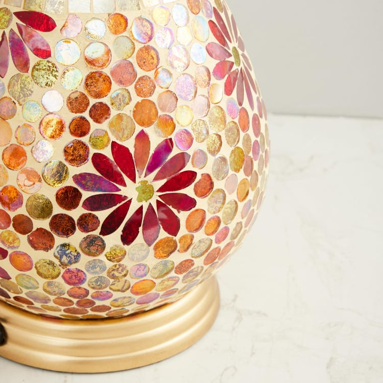 Designed with a floral texture, this round table lamp comes with a metallic stand. Take advantage of its vibrant design and make your living room decor a favourite.