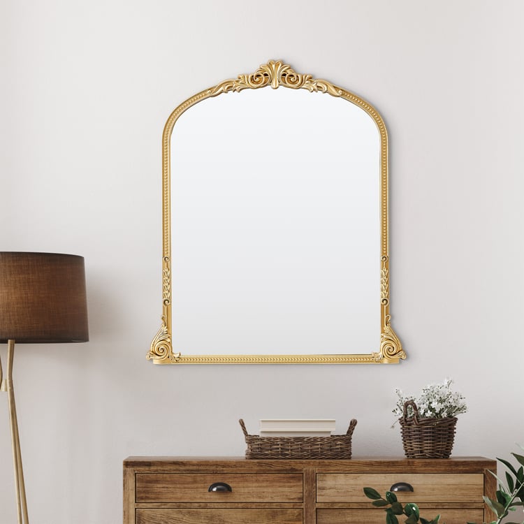 Add a touch of artisanal charm to your walls with this decorative mirror, crafted from plastic, iron, and glass. Finished with elegant detailing, it blends everyday functionality with a stylish decorative appeal.