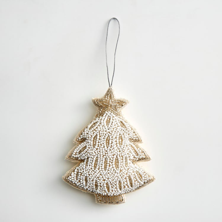 Bring in some festive spirit by adding this ornament to your Christmas tree. Crafted in a tree shape, it is made of fabric with glass bead decorations and a loop at the top that allows convenient hanging on the tree branch.