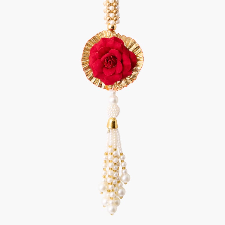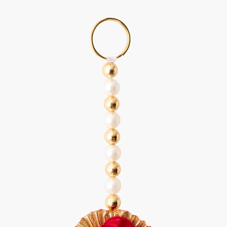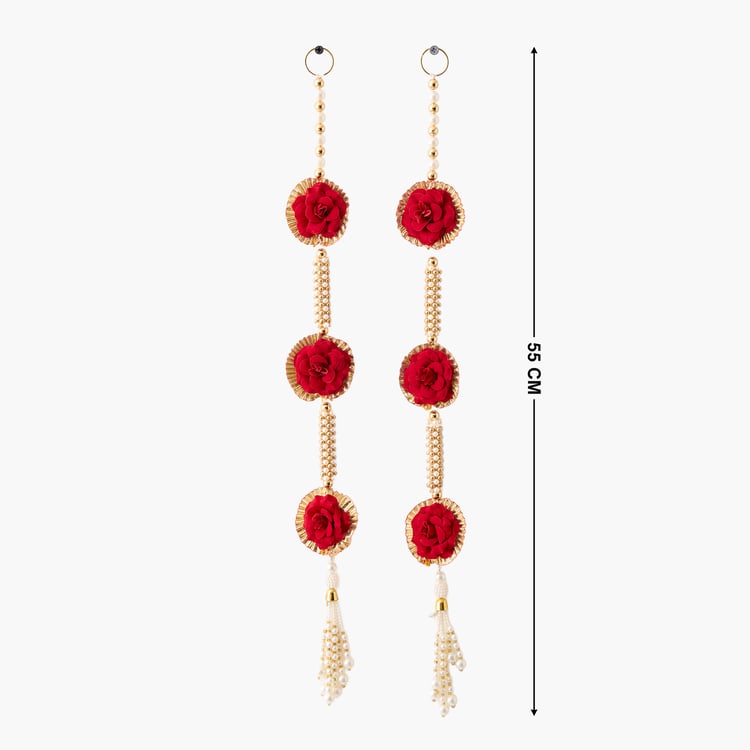 Add a touch of tradition with these elegant hanging latkans, featuring metal rings, bead work, rose embellishments, and jhumka-style charms, perfect for festivals, weddings, or everyday home decor.