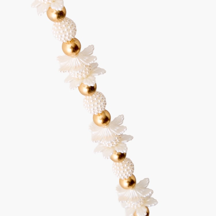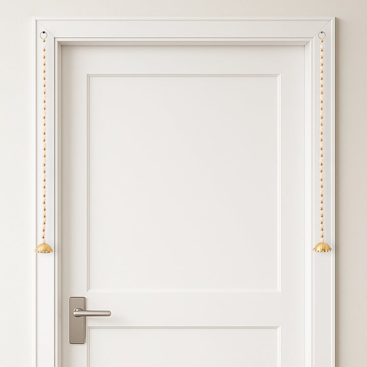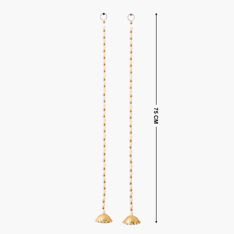 Enhance your entrance with this set of 2 pearl door latkans, crafted from plastic and metal. Featuring elegant beads and traditional charm, they add a festive touch to any doorway.