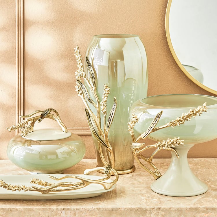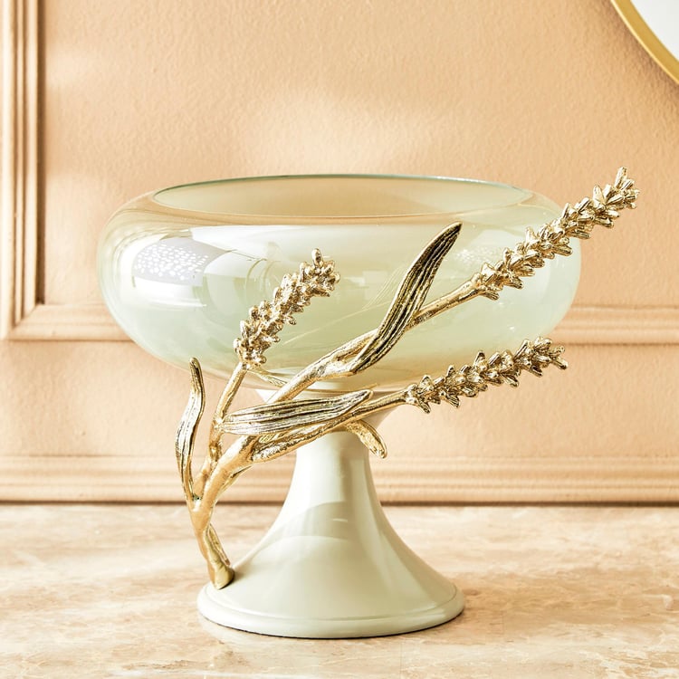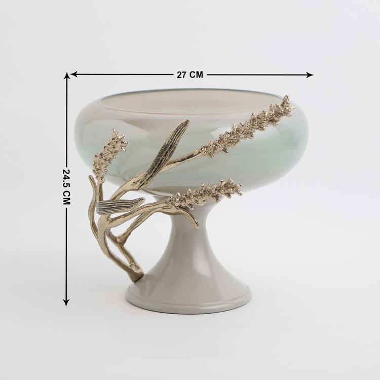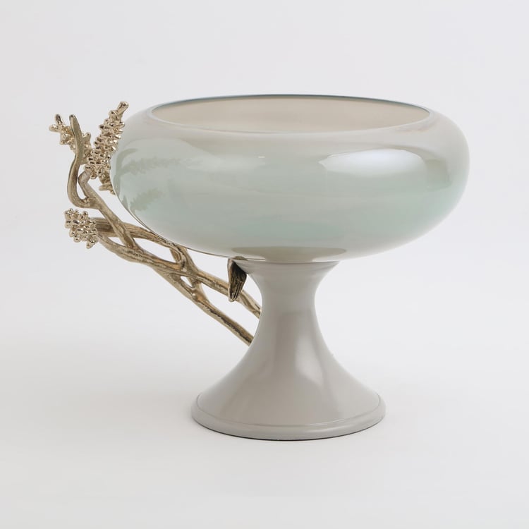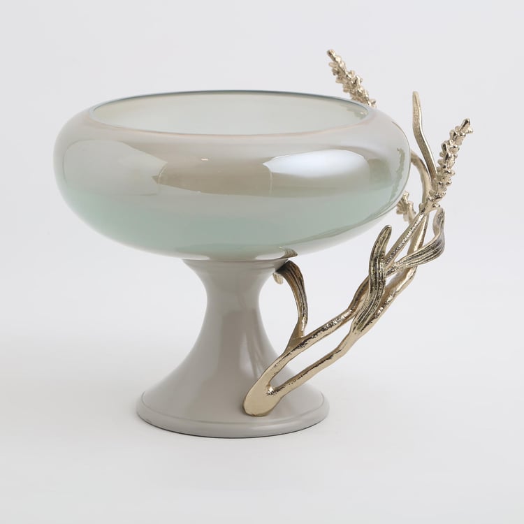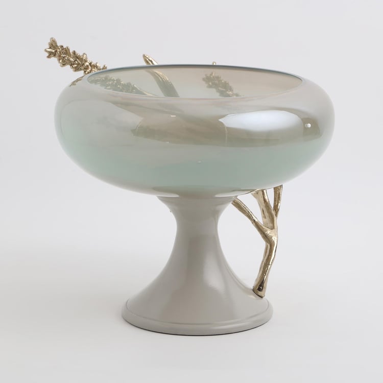 Fill your space with elegance with this decorative bowl. It is made of glass with a wide curvy shaped profile and a base. The aluminium branch detailing adds to the splendour.