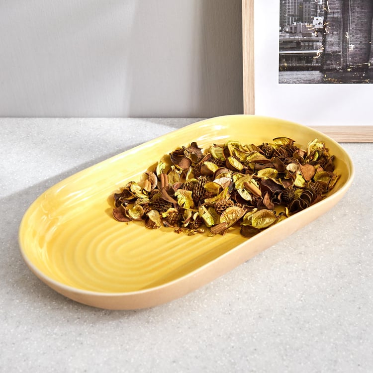 Infuse an element of finesse and sophistication into your home with this decorative platter. This ceramic-etched tray lends a contemporary look and a rustic charm to the theme of your interior. Embellish a side table with one of our potpourri trays to add beauty to any living space.