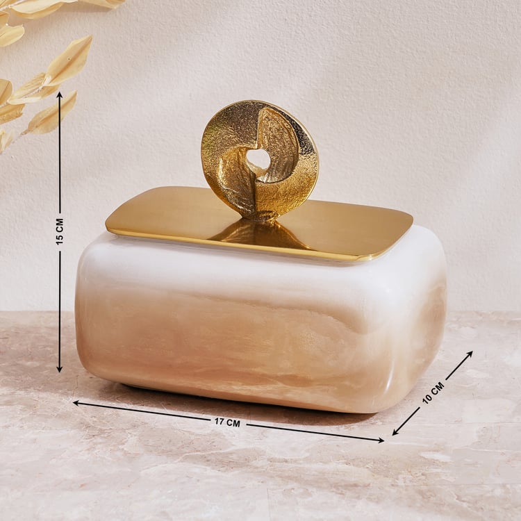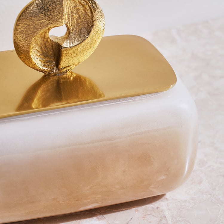 Organise your treasures in style with this elegant glass and metal trinket box. It's marble like design and sleek lid make it perfect for jewellery, keepsakes, or small essentials, adding a touch of refinement to any dresser or vanity.