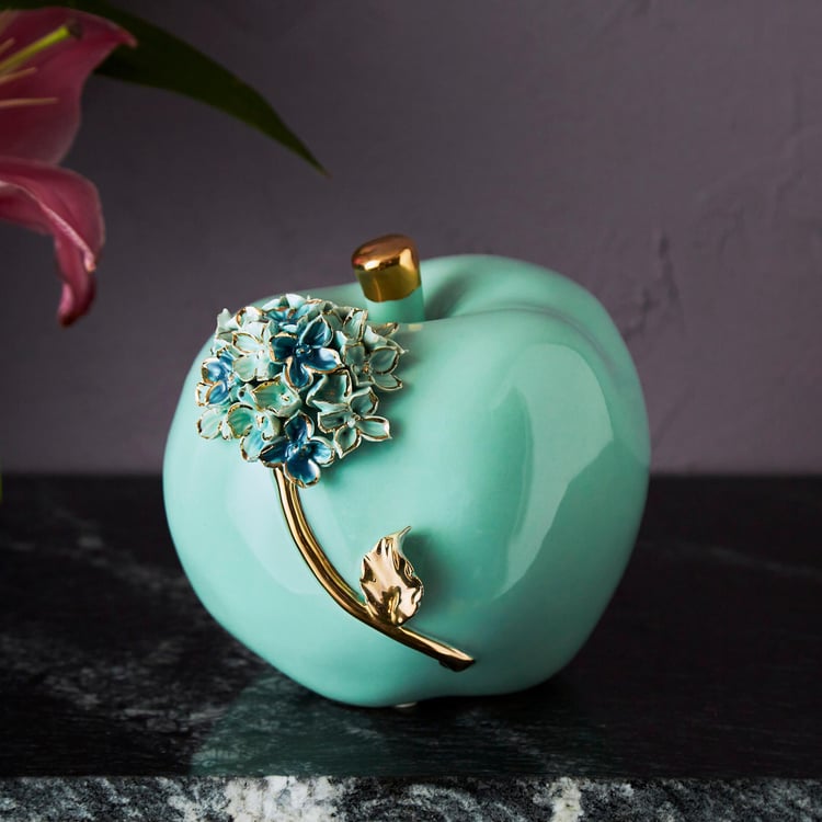Lend a finishing touch to your space with this table accent. Made from ceramic, it features an apple-shaped profile with floral accents for added style.