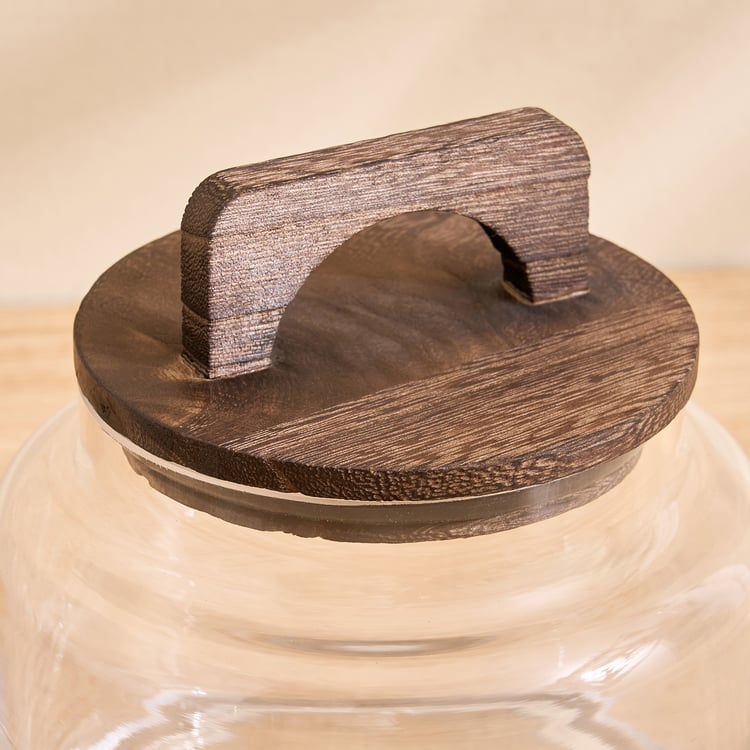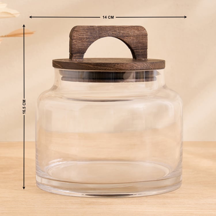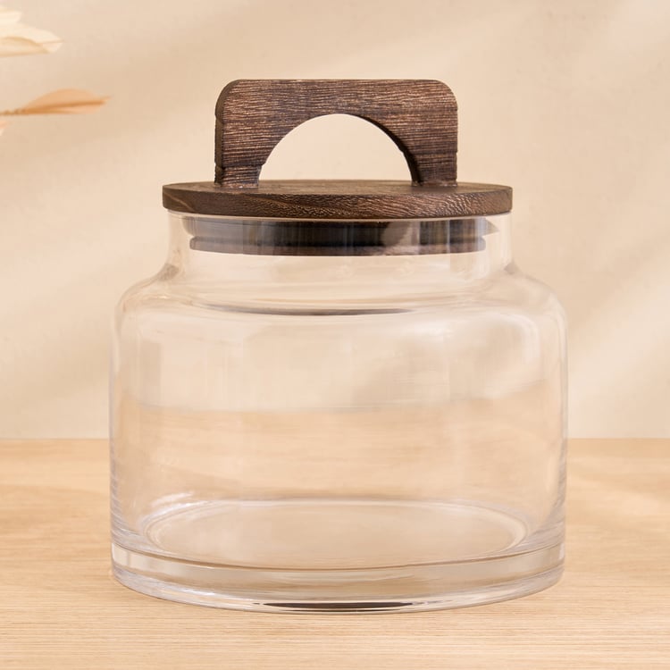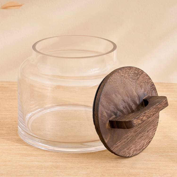 Keep your treasures stylishly stored with this glass trinket box featuring a wooden lid. Its clear design and natural wood accent make it a chic addition to dressers, vanities, or shelves.