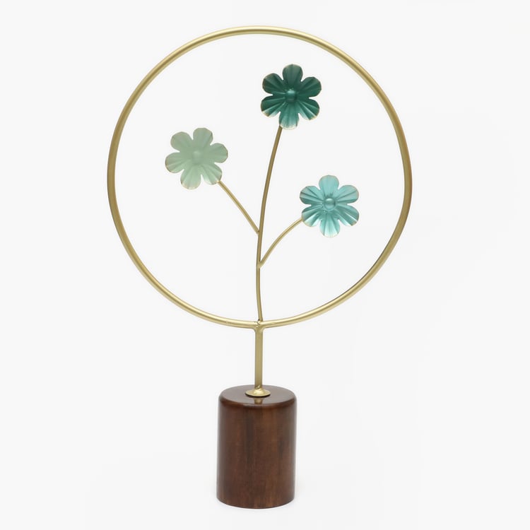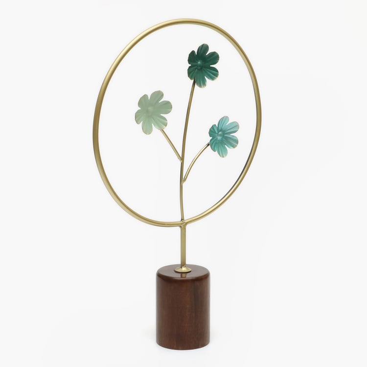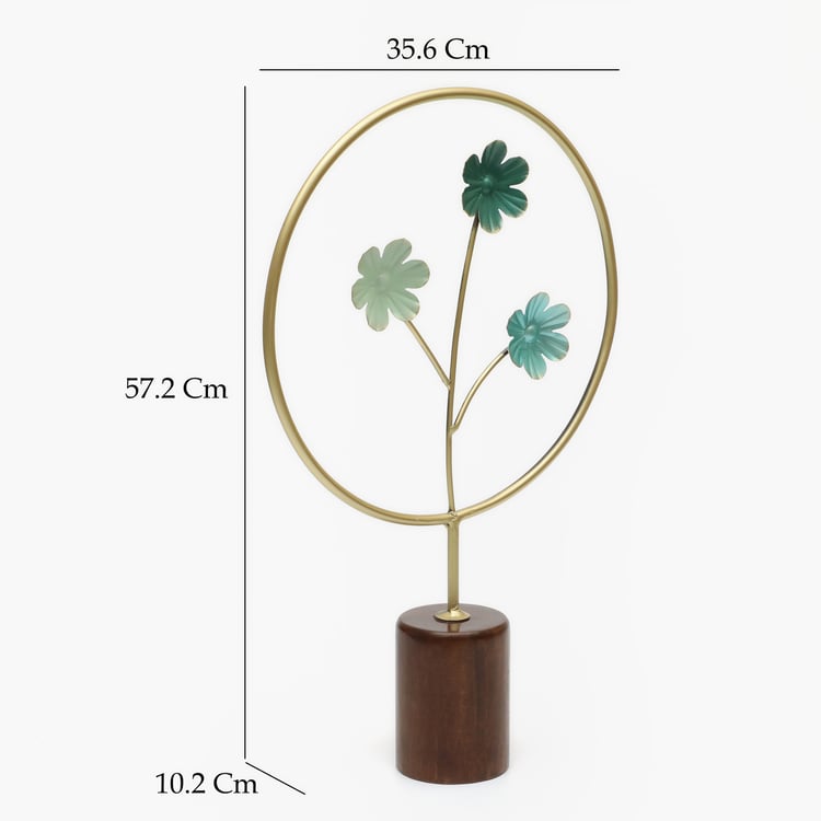 This table accent features a beautifully crafted tree with detailed flowers set within a ring and supported by a sturdy cylindrical base. Made of metal, this elegant piece adds a touch of nature-inspired charm to any table or shelf, making it a perfect addition to your decor.