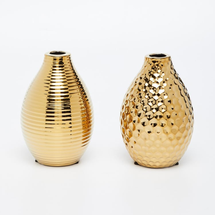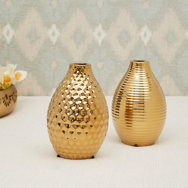 This set of bud vases with a sleek textured finish is a fine addition to your decor collection.