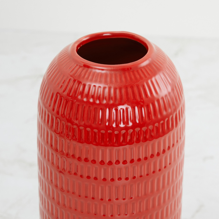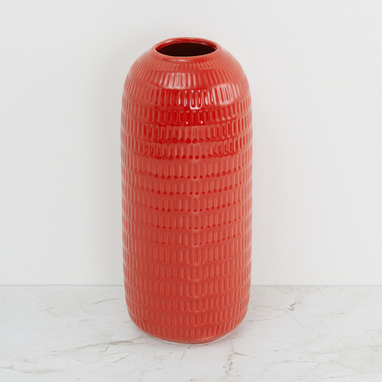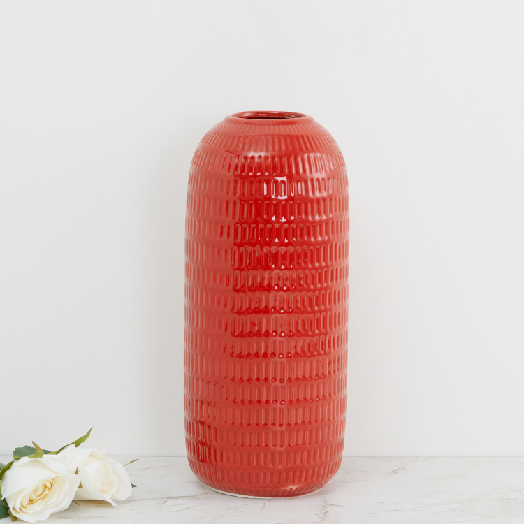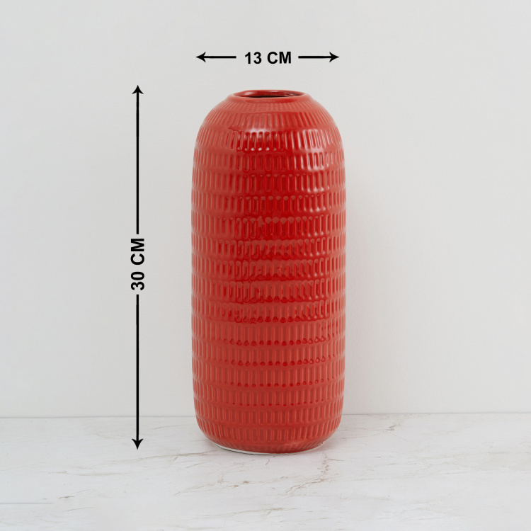 Colour Connect Textured Porcelain Round Single Pc. Vase - Red - 13 cm L x 30 cm H