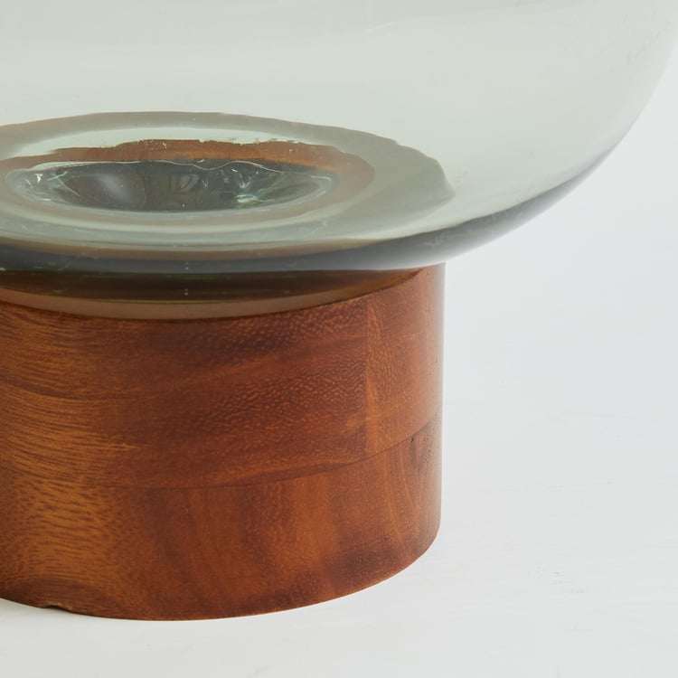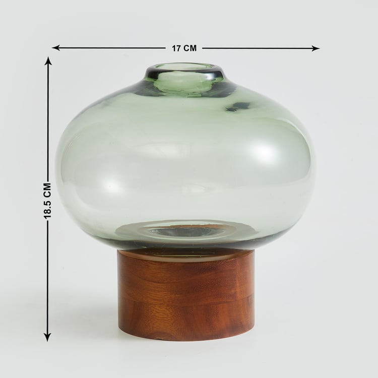Fern Living Glass Vase with Wooden Base