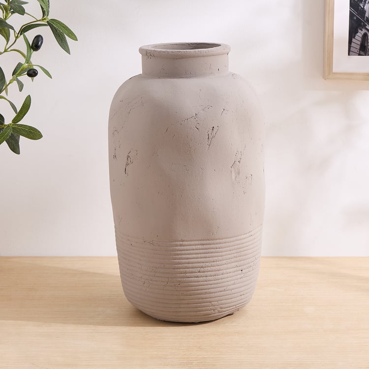 Balance your home's ambience in this terracotta floor vase that comes in a ribbed surface, ideal for aesthetic appeal.