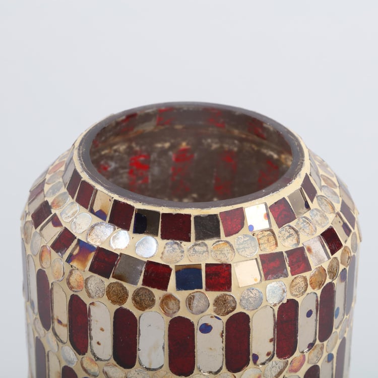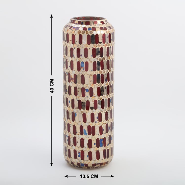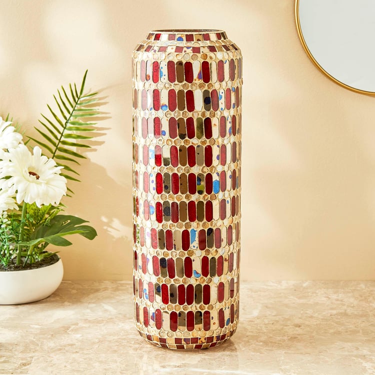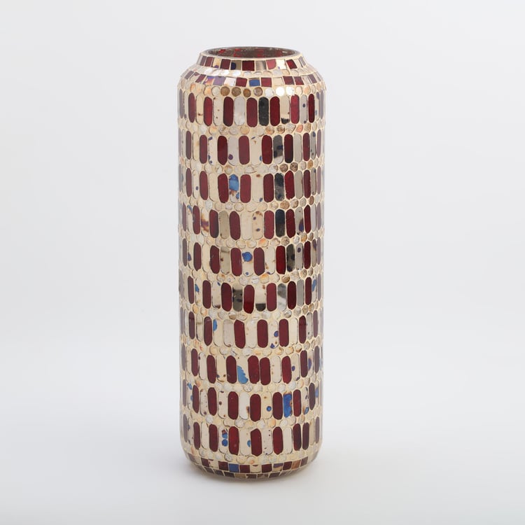 Add an intriguing touch to your decor with this vase. It features a capsule-shaped mosaic pattern that is artfully arranged on the glass vase. Display it on its own or with flowers to transform your space.