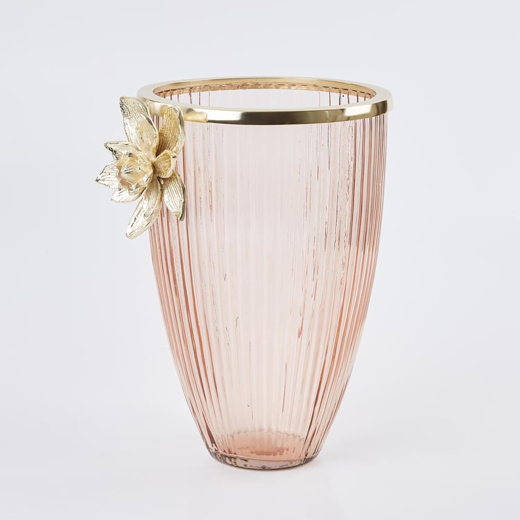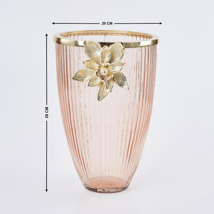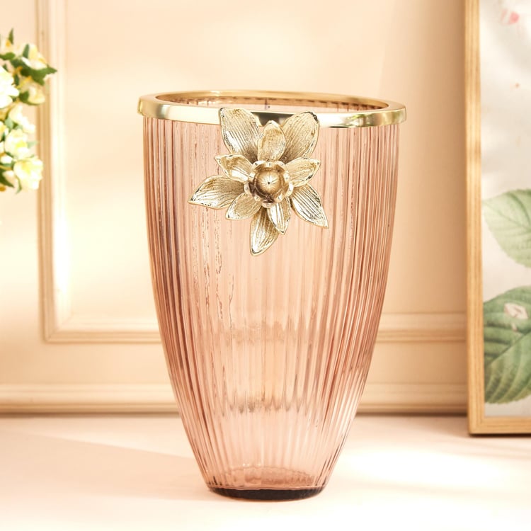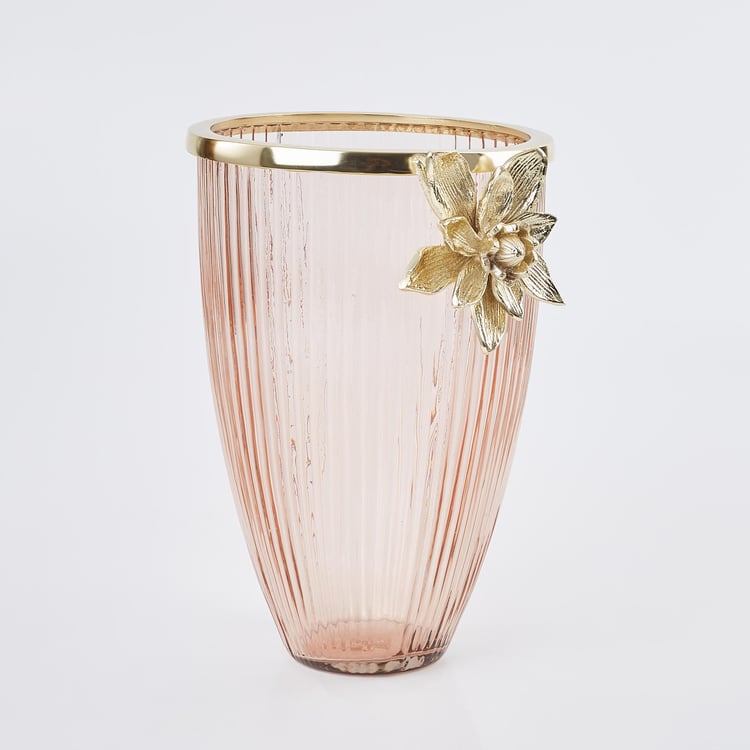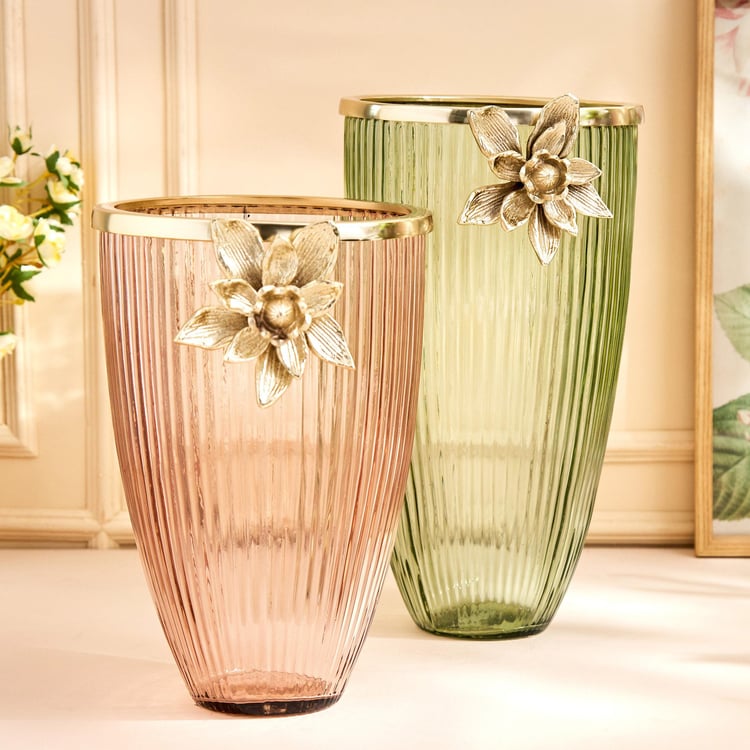Infuse an element of finesse and sophistication into your home with this vase. Made with glass and metal embellishment, this vase lends a contemporary look and adds a charm to your interior theme. Embellish your bedroom with this vase and add beauty to any living space.
