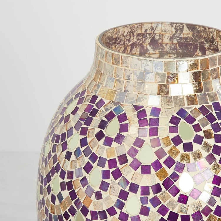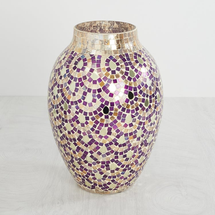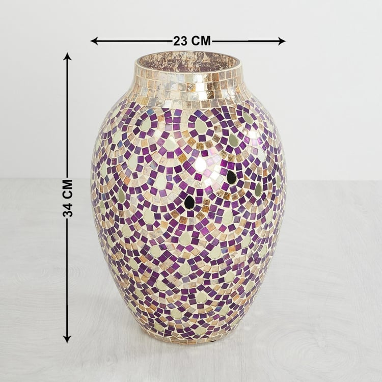 With a geometric print and alluring mirror work adding a dash of edge to the muted background, this enticing vase injects a shot of festive exuberance to your surroundings.