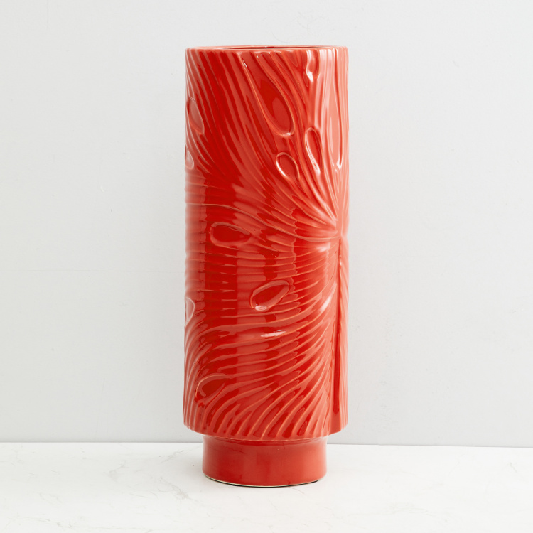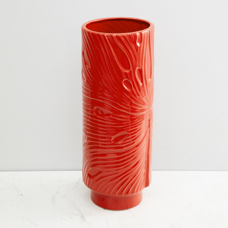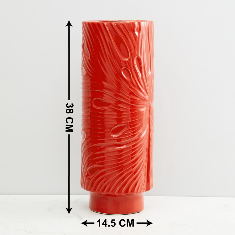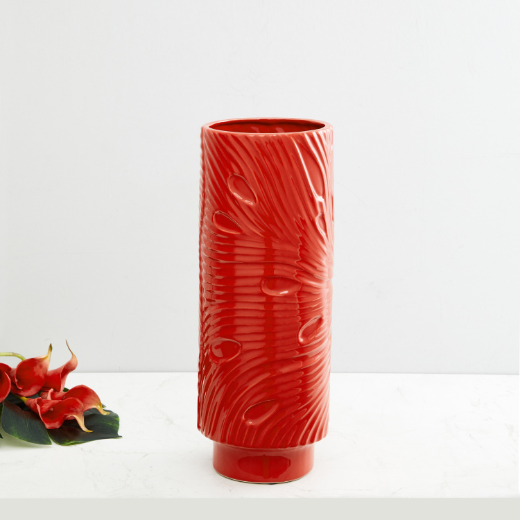 Adorned by an embossed design and a glossy finish, this tall vase is a great addition to your living room decor for a refreshing appeal. Place this alongside your sofa and enhance the overall interior of your homefront.