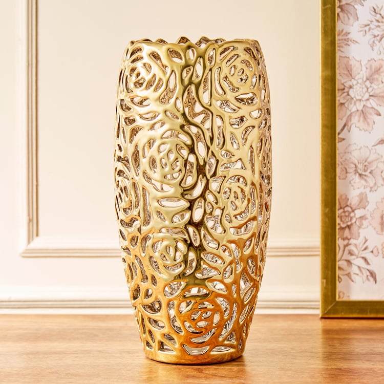 Stellar Stoneware Cut-Out Tall Vase