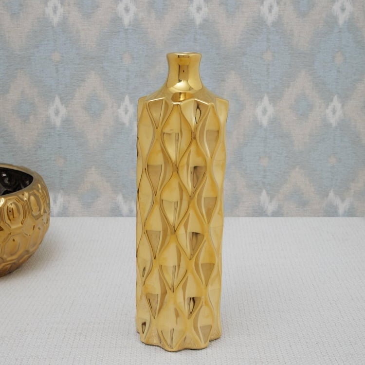 Rendered in metallic finish with an alluring wave detail, this vase makes for a penchant decor accessory.