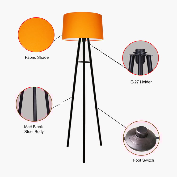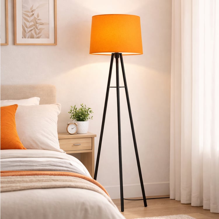 Elevate your space with modern tripod floor lamp, which welcomes mid-century modern style into your home. It features a trio of sleek black finish legs paired with a flaxen cylindrical drum shade. This shade boasts a classic shape that adds a timeless touch to this floor lamp and it easy to incorporate into your room decor, thanks to their versatile neutral hue. Even more, they complement the light black finish of the metal legs seamlessly, creating a warm lamp that coordinates with any room of your home.
