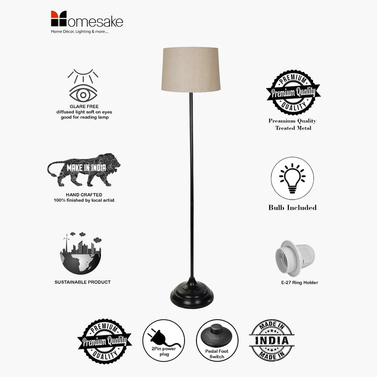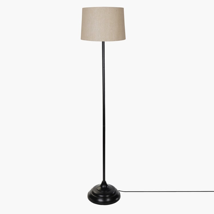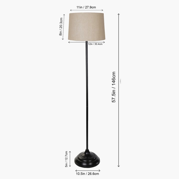 Elevate your space with modern straight floor lamp, which welcomes mid-century modern style into your home. It features sleek black finish leg paired with a flaxen cylindrical drum shade. This shade boasts a classic shape that adds a timeless touch to this floor lamp and it easy to incorporate into your room decor thanks to their versatile neutral hue. Even more, they complement the light black finish of the metal leg seamlessly, creating a warm lamp that coordinates with any room of your home.