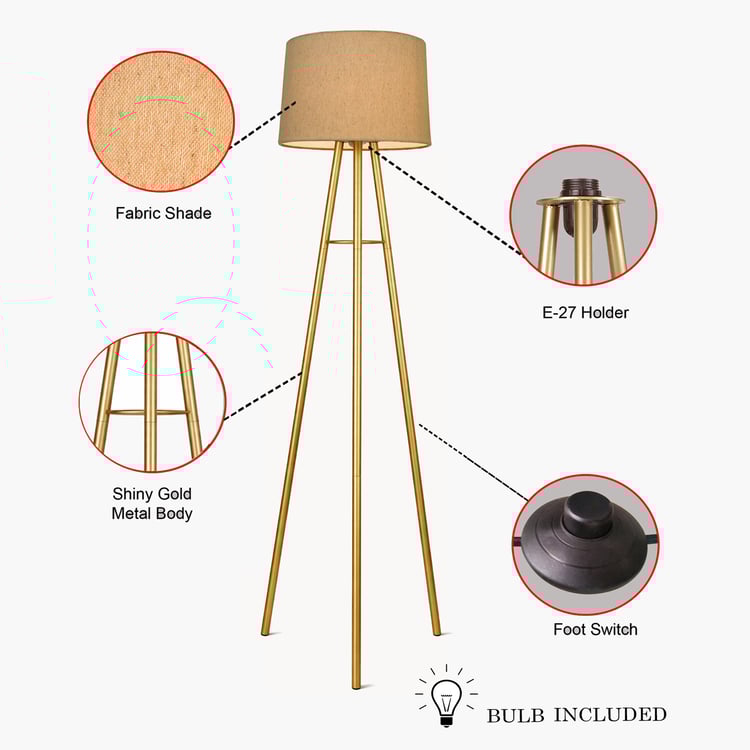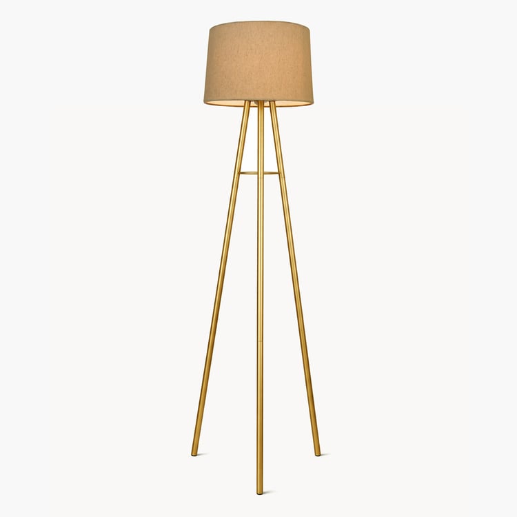 Elevate your space with this modern tripod floor lamp that brings mid-century style into your home. Featuring sleek metal legs and a flaxen cylindrical drum shade, its neutral tones add timeless warmth and blend effortlessly with any room decor.