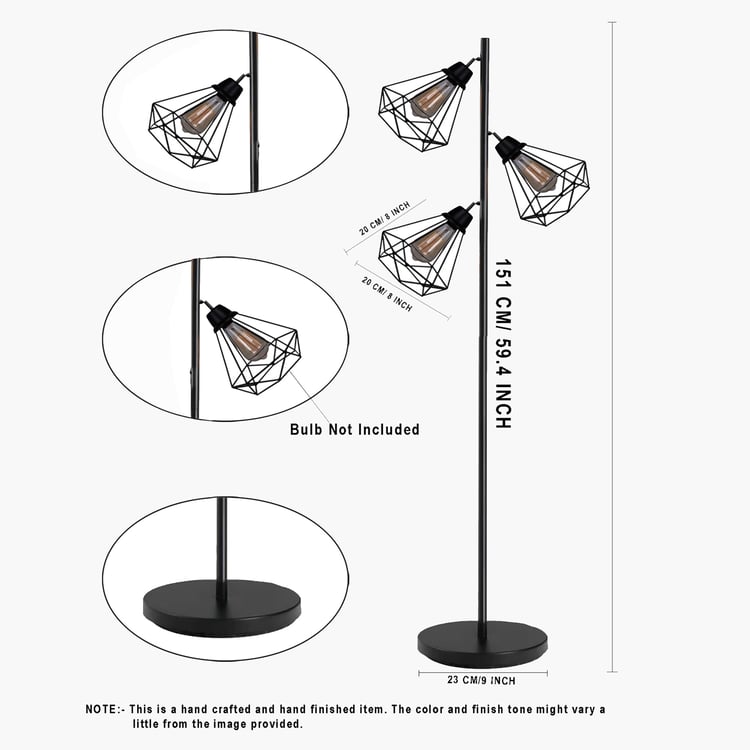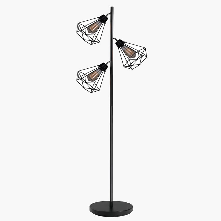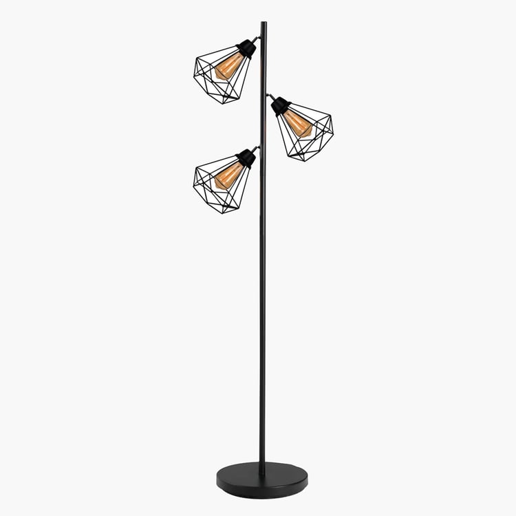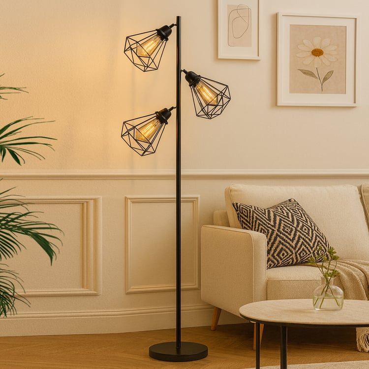 Add a statement lighting piece to your home with this tree floor lamp. Featuring three metal cage-style shades that cast light in different directions, it creates a balanced and ambient glow. It has. a footswitch and a stable metal base. Designed with a minimalist yet classical silhouette, this space-saving floor lamp adds height and artistic appeal to any room.