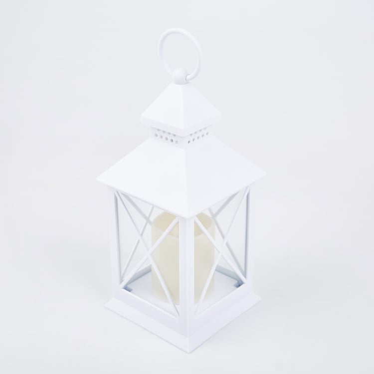Enhanced with a sophisticated design, this hanging lantern features a plastic framing with a transparent window and LED lights, which makes it the perfect candle lantern for your decor. It is a blend of modern and vintage design. The hanging hook helps with the ease of the drape and also battery operated.