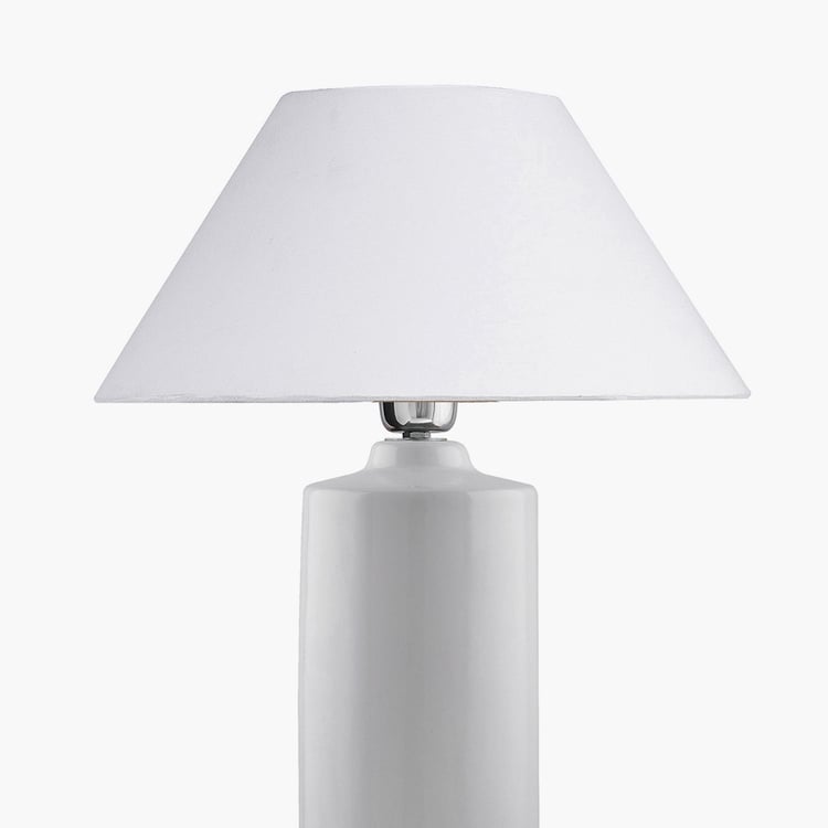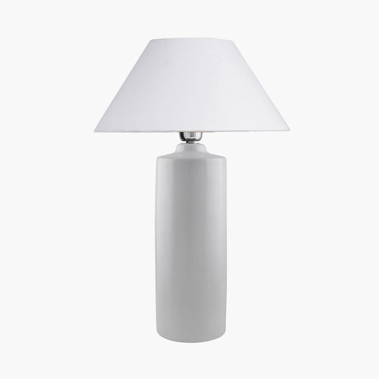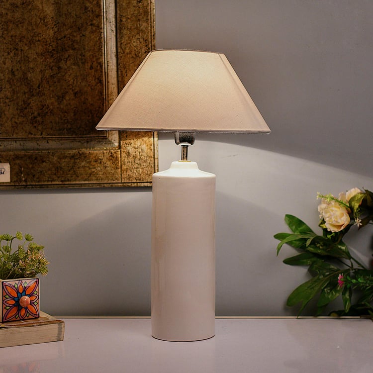 This table lamp is the perfect modern accessory for a bedroom, study room, or living space. It features a khadi fabric drum-shaped shade and a 2-way switch, while the base is made of glazed ceramic and acrylic. The design takes a fresh twist with lots of textural patterning, while the solid colour allows the plentiful texture and modern silhouette to truly shine. It comes with an E27 bulb (bulb included), a convenient on/off switch, and a 1.5-meter-long wire with tested and approved standards for perfect and safe lighting.