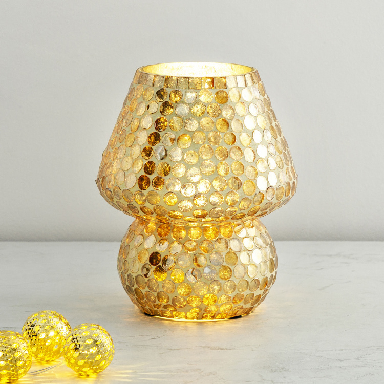 Enhanced with an intricately embellished design, this table lamp is a staple update to your decor collection. Attached with an electric chord, this one lightens up your room with vibrant colours.