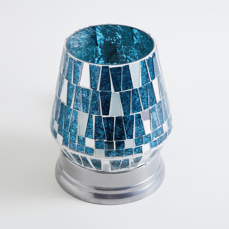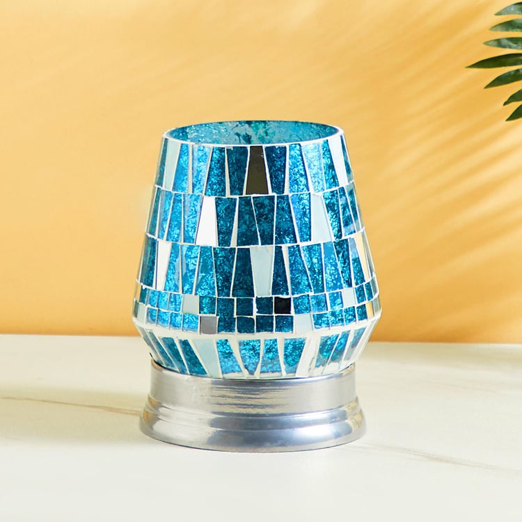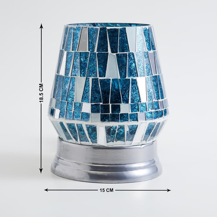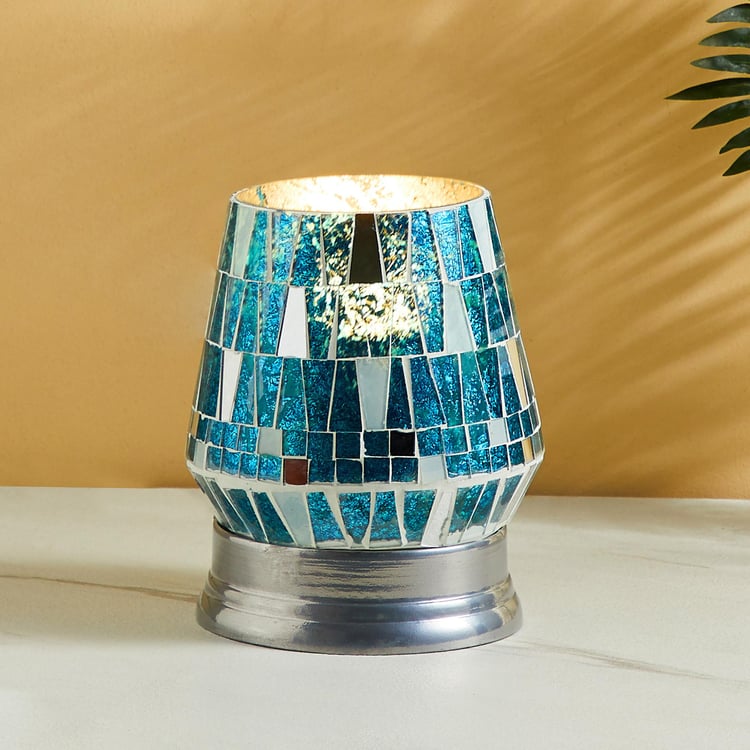 Add a decorative touch to your end or night table with this lamp. It features a durable base and a glass shade that is decorated with mosaic patterns. The lamp accommodates a bulb inside. When lit, the mosaic patterns are highlighted to create an eye-catching look.