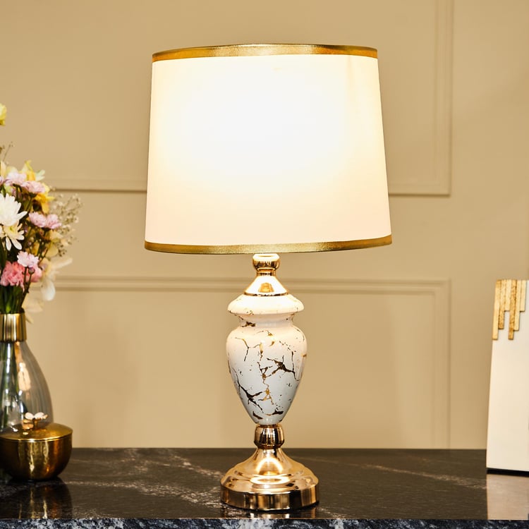 Enhance your home with the light of this table lamp. It is made from ceramic with a printed surface.