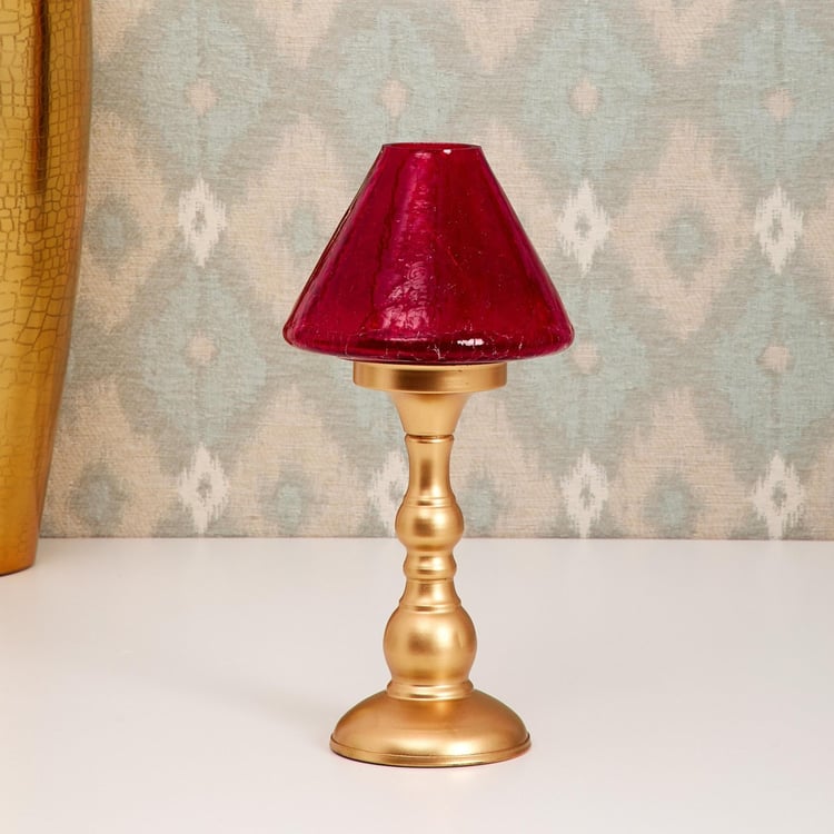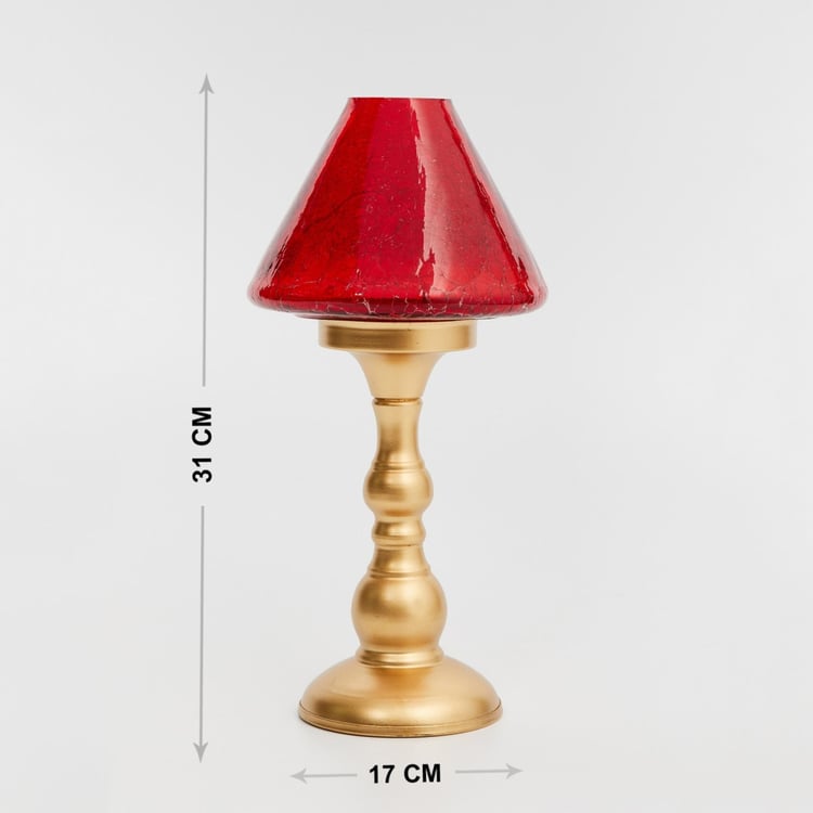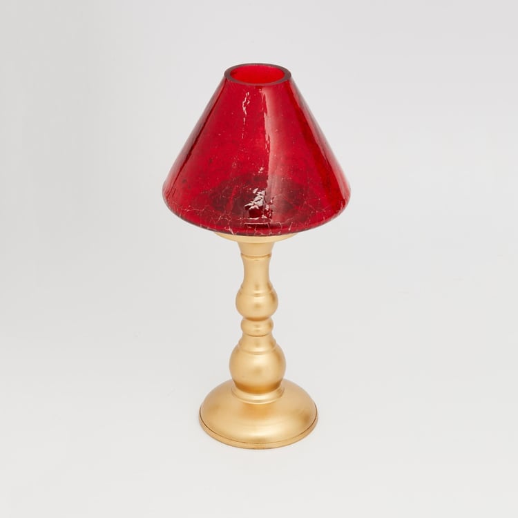 Designed into an alluring accessory with crackle glass lamp and metal stem base, this table lamp makes for a classic decor accessory.